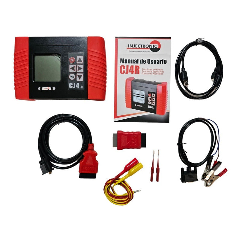 * Distribuidor autorizado directo de fabrica con 32 años de experiencia en México * Soporte tecnico y asesoria * Garantia * Protegemos cada envío de una forma profesional para que llegue a ti de buena forma * Facturación en línea INJECTRONIC CJ4-R SCANNER AUTOMOTRIZ CON OSCILOSCOPIO DE 2 CANALES & 2 AÑOS DE ACTUALIZACION. Por su cobertura extendida, facilidad de uso y conexiones inalámbricas, con el CJ4R tendrás la herramienta perfecta de reparación automotriz para las actividades diarias en tu taller. El escáner automotriz CJ4R es un equipo de diagnóstico el cual tiene integrado un osciloscopio de 2 canales, e incluye cobertura en marcas específicas para vehículos a gasolina y diésel ligero. A esta nueva presentación se le denomina CJ4-R que tiene las siguientes características generales: Protectores de goma en sus extremos. SD card de 2GB integrada. Compatible con CJ4 tradicional. Puerto Bluetooth integrado. Maletín compacto y resistente. Manual impreso de Uso. 2 años de actualizaciones gratis. 3 años de garantía. Amplia cobertura. (Ver listado del CJ4) Monitor CJ4-R (Scanner de primera opción en el diagnóstico) Osciloscopio integrado 2 canales. 2 Cables Sonda con Pinzas Caimán 2 Puntas Largas de Punción para Osciloscopio Conector Modulo 4515 para Nissan Tsuru del 2004 en Adelante Cable USB Cable principal OBD2 Cable para Conexión a batería FUNCIONES. 1.- Escaner Multimarcas. 2.- Osciloscopio 2 canales. 3.- Manejo a distancia por Bluetooth. CARACTERÍSTICAS DEL CJ4R COBERTURA.- El CJ4R tiene una cobertura dirigida a los automóviles que más llegan a los talleres después de expirar la garantía de las agencias. Para más de 50 marcas incluyendo Americanos, Asiáticos y Europeos. En modelos específicos cuenta con funciones especiales como ajustes de cuerpos de aceleración, transmisiones powershift, programación de llaves, controles bidireccionales, dirección hidráulica, ajustes básicos, hermanar computadoras FCA, calibracion inyectores common rail y más FACILIDAD DE USO.- El sistema de navegación del CJ4R es intuitivo y fácil de manejar. Por ser una plataforma ampliamente utilizada, muchos técnicos han sido entrenados o han operado el equipo con anterioridad, esto permite una rápida puesta en marcha sin tener que invertir repetidamente en entrenamiento en manejo y operación de escaners de diagnóstico automotriz y dedicar más inversión en entrenamiento sobre el funcionamiento y reparación de los sistemas automotrices. RENDIMIENTO.- En promedio, más del 80% de las fallas en los automóviles más populares se reparan y se ajustan con la información y medición desplegada por un CJ4R. Este rendimiento lo hace altamente atractivo al ofrecer el mayor costo/beneficio del mercado. DURABILIDAD.- El diseño del escaner CJ4R está basado en la durabilidad y robustez. Su pantalla monocromática resiste altas temperaturas tanto del motor del automóvil como de luz solar directa, así como mantener visibilidad en cualquier condición de iluminación. Los soportes laterales de goma lo hacen resistente a caídas, abuso y almacenaje. El teclado de membrana permite una fácil operación con alta resistencia a aceites y grasas. INVERSIÓN EN ACTUALIZACIONES.- El CJ4R incluye dos años de actualizaciones gratuitas. Después de expirar las actualizaciones gratuitas, los costos por actualizarlo son los mas bajos de cualquier escaner en el mercado, con un estimado de no más de 2,000 pesos incluyendo IVA OSCILOSCOPIO.- Una gran ventaja que hace al CJ4R único en su tipo, es que integra un osciloscopio de dos canales con mediciones mínimas, máximas, cursores, formas de onda, rango de 1 a 20 voltios y 400,000 lecturas por segundo. Es ideal para capturar la mayoría de las señales automotrices con la resolución necesaria para un análisis rápido y sencillo. El osciloscopio es una herramienta que permite localizar problemas que no se pueden detectar con el escaner y es base para análisis más profundos al analizar la interacción de dispositivos electrónicos de control como sensores, actuadores, inyectores, bobinas, relevadores, computadoras, motores, válvulas y más. BLUETOOTH INALAMBRICO.- Si la pantalla monocromática integrada no es suficiente para desplegar información más específica, el CJ4R es el único escaner/osciloscopio que puede desplegar información en dispositivos Android y IOS de manera remota e inalámbrica. Con esta capacidad es posible desplegar en tablets con pantallas superiores a 10 pulgadas para usarse como escaner u osciloscopio. DIESEL LIGERO.- Muchos de los vehículos de diesel ligeros utilizados como utilitarios o de reparto pueden ser diagnosticados con el CJ4R. Cobertura para Sprinter, Worker, Kangoo, Transit, Hino, International e Isuzu ISUZU CAMIONES.- El CJ4R cuenta con cobertura especializada en camiones de carga y reparto de la marca ISUZU. Es el equipo recomendado por distribuidores de fabricante por su cobertura en camiones ELF y la capacidad de realizar ajustes a inyectores y funciones especializadas. SD CARD.- La utilización de SD CARD permite intercambiar información entre una PC y el CJ4R para realizar reportes, gráficas, almacenaje, ajustes, configuración, actualización, personalización y más. NO REQUIERE BATERIAS.- El CJ4R no requiere estar reemplazando las baterías cada dos años ya que se alimenta exclusivamente del conector OBDII del automóvil y además por el puerto USB conectándolo a una computadora PC. PREVERIFICACIONES ECOLÓGICAS.- El CJ4R contiene la aplicación CJSMOG que realiza preverificaciones basado en la norma oficial mexicana, ya que solo utiliza los monitores requeridos por la norma para dar resultados precisos en un semáforo en pantalla. No hay necesidad de realizar la interpretación de todos los monitores que escaners importados despliegan, ya que no identifican y separan los requeridos por la norma mexicana de la megalópolis. DISPOSITIVOS OPCIONALES.- El CJ4R es el único escáner qu