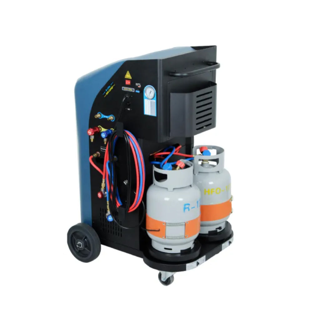 4. Seguridad: El equipo incluye múltiples protecciones (ej. válvula de seguridad por sobrepresión, non-sparkle en la bomba de vacío y el compresor). La función de identificador de refrigerante (a menudo opcional, pero recomendado) asegura que el refrigerante en el vehículo sea realmente el que se supone que es, previniendo la contaminación de los tanques del equipo.