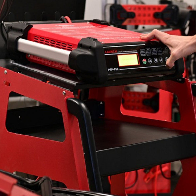 LAUNCH PFP-150 Programming Flash Power es una herramienta imprescindible para el diagnóstico de vehículos. Puede prevenir fallas y anormalidades durante el proceso de programación debido al bajo voltaje. 5 modos de protección: protección inversa, protección contra cortocircuitos, protección contra bajo voltaje, protección contra sobrecalentamiento, protección contra sobrecargas, rectificación síncrona (solo 220 V) Modo normal: seleccione el modo de carga según la posición de la batería del vehículo (interior o exterior) Modo Exhibición: Para carga continua con baja corriente en salas de exhibición Modo de programación: proporciona una fuente de voltaje estable para el automóvil que necesita programación o decodificación, desde 12 V a 16 V. Modo de reparación oculta: indica si la batería debe repararse o no. Trabaja con varias baterías, como batería AGM, batería de gel. Especificación Voltaje de entrada: 110V / 220V Fuerza: 1200W Máx. Actual: 100A Voltaje de carga: 12V Modo de programación: 2~16V / 2~200A MAH 10~1200Ah Dimensión: 430,5*392,5*130mm Longitud del cable eléctrico: 3m Peso : 8,5 kilos