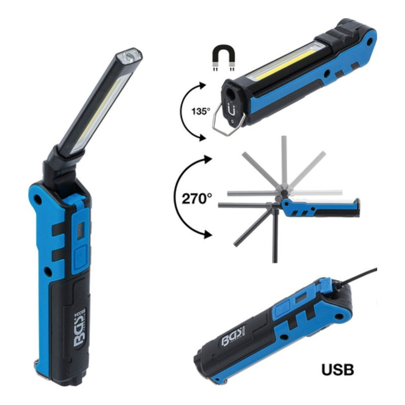 En BGS TECHNIC MX ofrecemos a nuestros clientes herramientas de uso común y especializadas con los mas altos estándares de calidad vigentes en Europa a precios competitivos Lampara Para Mecanico Articulada | Led Cob | 5 W | Bgs 85334 Características: Código: 85334 Características del producto: Sem validade Código universal de producto: 4048769053178 Condición del ítem: Nuevo Embalaje del envío: Flyer Marca: Bgs Modelo: 85334 MPN: 85334 SKU: 85334 Tiempo de garantía: 1 años Tipo de grantía: Garantía de fábrica • Tecnología LED COB • Luz LED SMD en el cabezal de la lámpara • Cabeza de lámpara, giratoria en 270° • Con imán en la base de la lámpara • Gancho de suspensión basculante • También se puede utilizar con el cargador enchufado • Pequeña y práctica lámpara con muy buena luminosidad, especialmente adecuada para lugares de difícil acceso • Alimentación eléctrica: batería • Tipo de batería: Li-Ion • Tensión de la batería: 3,7 V • Capacidad de la batería: 2000 mAh • Luz delantera: 3 W LED, 150 Lm • Luz lateral: 5 W COB LED, 360 Lm • Duración de la luz (luz delantera): 4,5 horas • Duración de la luz (luz lateral): 3 horas • Tiempo de carga: aprox. 4 horas • Toma de carga: micro USB • Dimensiones: 150 x 48 x 39 mm • Dimensiones (desplegada): 270 x 48 x 39 mm • Temperatura de carga: -5 °C hasta +45 °C • Temperatura de funcionamiento: -20 °C hasta +60 °C • Temperatura de almacenamiento: -20 °C hasta +60 °C • Material: policarbonato / elastómero termoplástico / aluminio • Peso del producto: 157 g contenido de suministro: • 1 Lámpara articulada a batería • 1 Cable de carga USB Si desea factura, favor de indicar el día de la compra de lo contrario por cuestiones fiscales, ya no sera posible proporcionarla y se genera como venta al publico en general