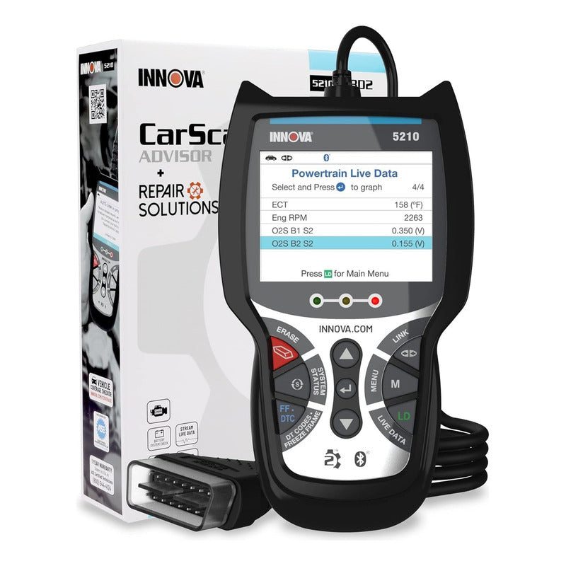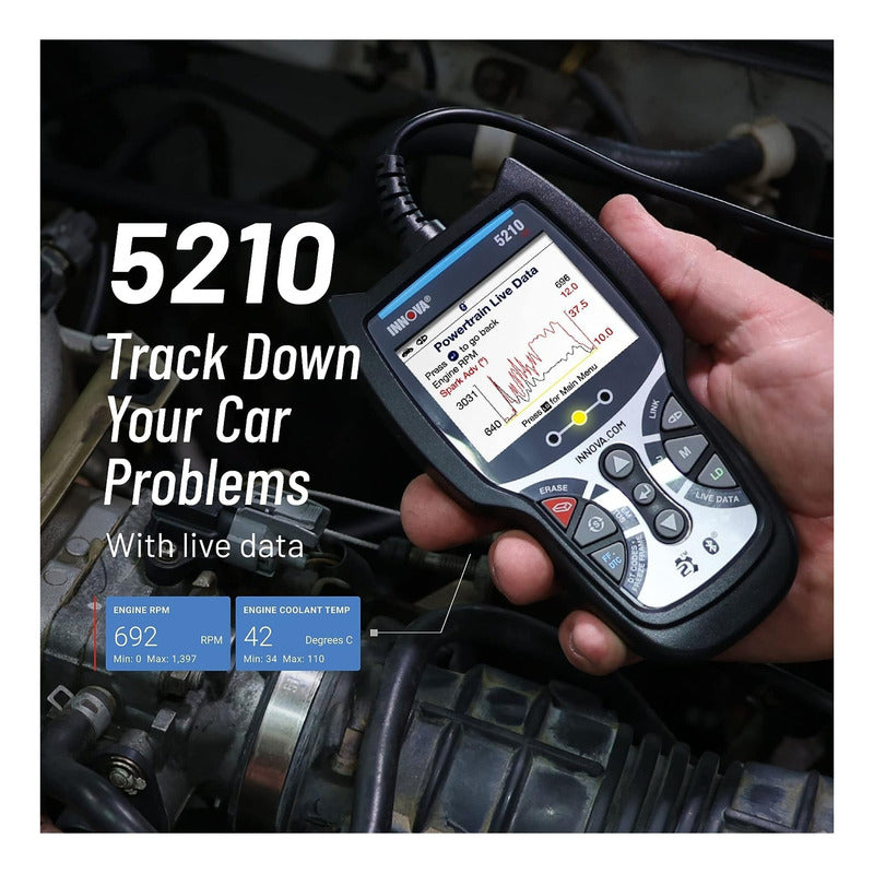 Escáner 5210 de Innova Mantiene el rendimiento máximo y la seguridad en la carretera: el escáner 5210 OBD2 te ayuda a encontrar fácilmente el problema y solucionar el problema. Utiliza la aplicación móvil RepairSolutions2 en Apple App Store o Google Play para soluciones en tiempo real y soluciones a tus problemas automotrices. Con esta aplicación, obtén correcciones verificadas, encuentra y compra la pieza exacta necesaria para la reparación, mira los horarios de mantenimiento, compra piezas, recibe boletines técnicos, recordatorios de seguridad y distribuidores, y accede a la mejor base de datos de Innova. Lector de código OBD2 de alta calidad con cobertura y funcionalidad mejoradas: esta herramienta de diagnóstico de coche permite a mecánicos domésticos, entusiastas del automóvil y técnicos de servicio y reparación con funcionalidad de nivel profesional. Es un lector de códigos de vehículo que lee y borra códigos de motor OBD y muestra toda la información del vehículo desde cuando se activó un código de problema. Esta herramienta de escaneo Innova es compatible con inglés, español y francés. Datos en vivo para un diagnóstico más preciso: con el escáner OBD Innova 5210 puedes ver la información esencial de tu vehículo como RPM, velocidad y temperatura del aceite en tiempo real para ayudar a identificar y corregir problemas. También puedes comprobar y probar tu batería y alternador, por lo que sabes si necesitas llevar tu coche a un técnico o no. Fácil autodagnóstico del estado de emisión y otra información importante: conoce los resultados de tu control de humo antes de que tu estado lo haga. Este lector de luz del motor de comprobación de coche determina si pasarás una prueba de humo del vehículo estatal. Esta herramienta de escaneo OBD2 también puede proporcionar procedimientos de ciclo de viaje para completar tu comprobación de humo. Este lector de motor incluye funciones para ABS (freno) para asegurarse de que siempre estás conduciendo de forma segura. Compra con confianza con productos diseñados y respaldados en Estados Unidos: nuestro equipo de atención al cliente con sede en California, certificado ASE está encantado de ayudarte mientras navegas por este producto. Es un escáner de diagnóstico perfecto para todos los coches compatibles, úsalo en cualquier coche OBD2 extranjero o nacional de 1996 o más reciente, camión ligero, SUV o vehículo híbrido. ¿Tienes preguntas? Estamos aquí para ayudarte. La Innova 5210 es una impresionante herramienta de nivel básico que proporciona características de gama alta como ABS y datos en directo, gracias a su pantalla todo en uno patentada. Gran y fácil de leer con más de 20 piezas de información en una sola pantalla. Características incluidas Aplicación RepairSolutions2: Obtenga las correcciones verificadas, la pieza exacta requerida para la reparación, los horarios de mantenimiento, los boletines de servicio técnico, las retiradas y más. Empoderarse con el conocimiento para arreglar su vehículo correctamente la primera vez. Compruebe la luz del motor: Lea y borre la luz de comprobación del motor con un solo botón. ABS: Diagnosticar los sistemas de frenado de la mayoría de los vehículos nacionales, asiáticos y europeos de 1996 y más nuevos. Prueba de batería y sistema de carga: Compruebe si la batería y el alternador están en buen estado o necesitan reemplazarse. Datos en directo: Consulta la información esencial sobre tu vehículo en tiempo real (por ejemplo, RPM, temperatura del aceite, etc.) para ayudar en el diagnóstico. Niveles de gravedad del código: Identifica rápidamente si tu vehículo necesita una solución inmediata o si puede esperar hasta que llegues a casa para arreglarlo tú mismo. Indicadores LED de comprobación de humo: Averigüe inmediatamente si su vehículo pasará una prueba de emisiones. Pantalla patentada todo en uno y teclas de acceso rápido: Con más de 20 piezas de información en una sola pantalla, incluyendo definiciones de código, encuentra el problema más rápido y dedica menos tiempo a desplazarse por los menús. Congelar datos de fotogramas: Mostrar toda la información del vehículo desde el momento en que se activó un código de error.