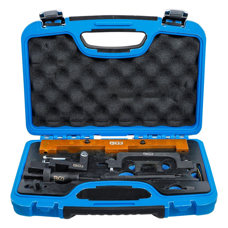 BGS es sinónimo de calidad y confianza. Con más de 45 años de experiencia, ofrecemos herramientas automotrices y ferreteras innovadoras y duraderas. Nuestra amplia gama de productos garantiza un rendimiento superior en cada proyecto. NOMBRE DEL ARTÍCULO: KIT DE SINCRONIZACIÓN PARA BMW N42 / N46 / N46T Descripción: para ajustar/comprobar la sincronización del motor y la unidad Vanos adecuado para los siguientes modelos BMW: E81 (116i / 118i / 120i) E87 (118i / 120i) E88 (120i) E46 (316i / 316ti / 316i / 318ci / 318ti) E90 (318i / 320i) E91 (318i / 320i) E92 (320i) E93 (320i) E60 (520i) E83 (X3 2.0) E85 (Z4 2.0) Contenido de suministro: herramienta de pretensado, para ser utilizado como OEM 119340 herramienta de ajuste del engranaje del sensor, para utilizarse como OEM 119350 bloqueo del árbol de levas de admisión, para ser utilizado como OEM 119292 bloqueo del árbol de levas de escape, para ser utilizado como OEM 119291 bloqueo del volante, para ser utilizado como OEM 115120 ajuste del árbol de levas, para ser utilizado como OEM 119270 tornillo para herramienta de bloqueo, para ser utilizado como OEM 119293 pemo de bloqueo del cigüeñal, para ser utilizado como OEM 119190 Datos tecnicos: Número de modelo | SKU: 8834 Diseñado en: Alemania Marca: BGS Peso bruto: 3144 g Para usar como equipo original (OEM)1: 11 3 350 | 11 9 293 | 11 9 292 | 11 9 291 | 11 9 340 | 11 5 120 | 11 9 270 | 11 9 190 BMW