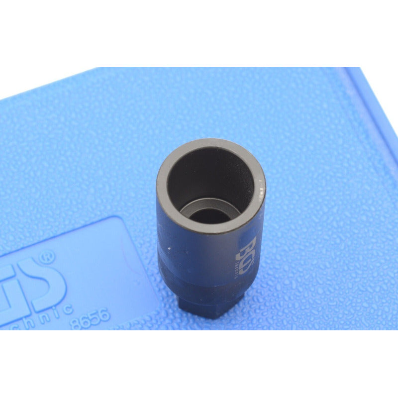 BGS 8656 Juego de dados especiales para desmontar tornillos antirrobo 10 piezas Descripción: Permite la extracción profesional de tornillos antirrobo "Abre" casi todos los tornillos antirrobo sin dañar la llanta Dados cónicos para una alta transmisión de fuerza El juego incluye: 8x cónica vasos de desmontaje, 60 mm de largo: Con los siguientes diámetros interiores: Ø 18.3 x Ø 16.4 mm Ø 19.5 x Ø 17.6 mm Ø 20.4 x Ø 18.5 mm Ø 21.6 x Ø 19.7 mm Ø 22.5 x Ø 20.6 mm Ø 25.5 x Ø 23.6 mm Ø 23.6 x Ø 21.7 mm Ø 24.5 x Ø 22.6 mm 2 mandriles desmontaje Material de fabricación S45C y SCM440
