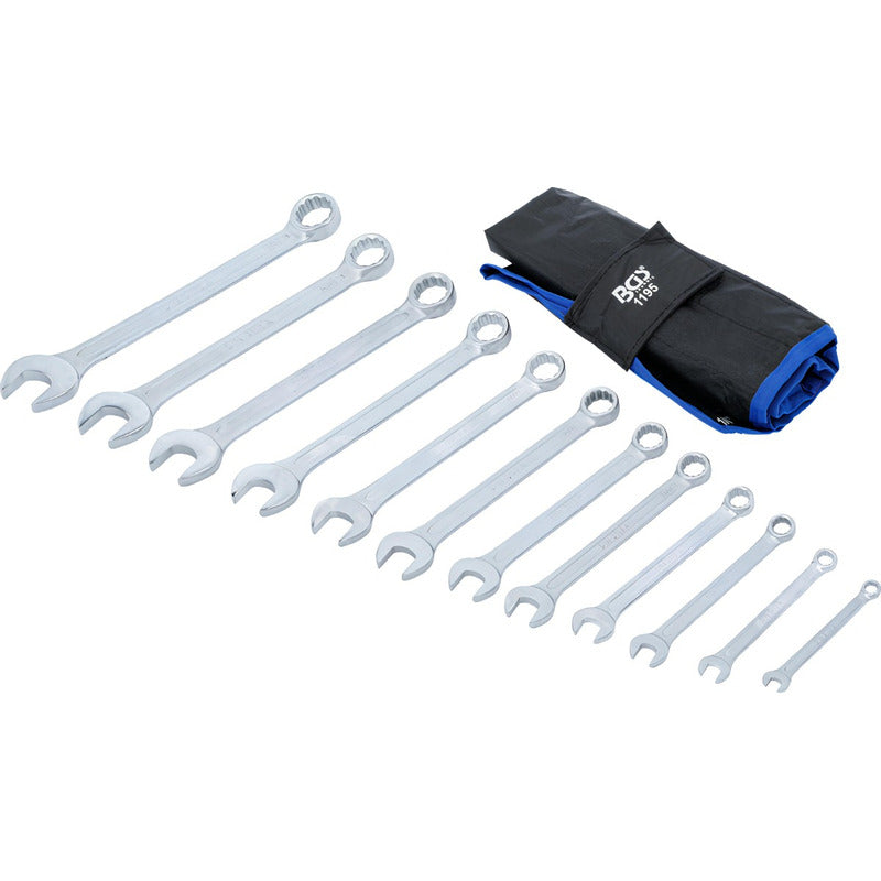 BGS 1195 SET DE 12 LLAVES COMBINADAS ESTANDAR EN BOLSA DE 1/4 A 15/16 Forjado en caliente Cromado, cabezas pulidas Extremo del anillo en ángulo de 15° Salida del anillo: 12 caras En bolsa enrollable de vinilo Contenido: llave combinadas 1/4" llave combinadas 5/16" llave combinadas 3/8" llave combinadas 7/16" llave combinadas 1/2" llave combinadas 9/16" llave combinadas 5/8" llave combinadas 11/16" llave combinadas 3/4" llave combinadas 13/16" llave combinadas 7/8" llave combinadas 15/16"