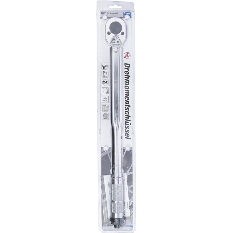 Torquimetro 1/2" | 30-210 Nm Matraca Reversible Tornillo De Bloqueo Para Fijar El Par De Apriete Ajustado Para La Comprobación Del Par De Apriete En Uniones Atornilladas Con Rosca Hacia La Derecha Señal De Clic Cuando Se Alcanza El Par De Apriete Seleccionado Bloqueo Del Valor Del Par De Apriete Ajustado Datos Tecnicos: Número De Modelo | Sku: 963 Diseñado En: Alemania Marca: Bgs Diy Perfil De Funcionamiento: Cuadrado Externo Tamaño Del Perfil De Accionamiento, Sistema Anglosajón: 1/2 " Tamaño Del Perfil De Funcionamiento, Sistema Métrico: 12,5 Mm Peso Bruto: 1358 G Torque Máx.: 210 Nm Par De Giro Mín.: 28 Nm Embalaje Adecuado Para Colgar De La Pared: Sí