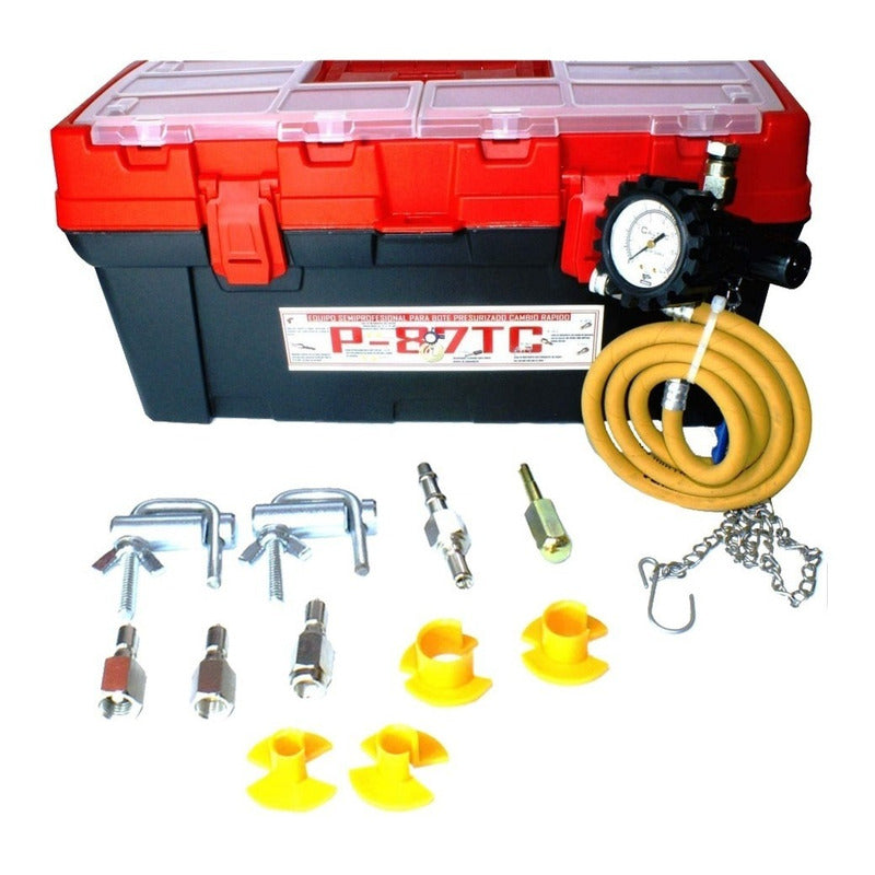 * Distribuidor autorizado directo de fabrica con 32 años de experiencia en México * Soporte tecnico y asesoria * Garantia * Protegemos cada envío de una forma profesional para que llegue a ti de buena forma * Facturación en línea EQUIPO PARA BOTE PRESURIZADO CON CAJA DE ALMACENAJE. LAVADOR DE INYECTORES Y MANÓMETRO MEDIDOR DE PRESIÓN DE GASOLINA EN UNO MISMO. 2 EN 1 PARA TALLERES DONDE NO CUENTAN CON COMPRESOR. PRÁCTICO ÚTIL Y VERSÁTIL. Descripción: Equipo Practico para diagnóstico de presión de bomba de gasolina y regulador de presión de gasolina, además lavado de inyectores. Este equipo cuenta con regulador de presión resistente a solventes. Sus componentes internos son fabricados en teflón que nos brinda mayor duración. Puedes dar mantenimiento preventivo en autos y camionetas que cuenten con sistema electrónico de inyección de gasolina. Este equipo esta constituido por: -Equipo con regulador de presión y seguro en perilla y Ponchador de botes presurizado. -Tapón para convertir el presurizado en manómetro medidor de presión de gasolina. -Manómetro con graduación más precisa y protector contra golpes -válvula de paso con sellos en teflón de mayor duración, manguera resistente a los solventes y ácidos diluidos. -Dos desconectores (Packman) de 3/8” y 5/16” para desconectar líneas y filtros de gasolina. -Dos desconectores de mangueras para Ford de ½” y 3/8”. -Dos Ahorcadores de mangueras H-3. -Un Desarmador Schrader para retirar válvulas D-4. -Adaptador para Nissan y VW especialmente diseñado para evitar daños al interior de las mangueras N-019. -Adaptador para Chrysler, Chevrolet y Mercedes Benz C-73. -Adaptador para Volkswagen y Nissan W-063. -Versátil adaptador para autos Ford, Peugeot, Algunos BMW y Volvo, F-83. Total: 12 Componentes. + Caja + Tapón. * No dejes de visitar nuestra tienda oficial de CedraTools en Mercado Libre: https://tienda.mercadolibre.com.mx/cedra-tools y no te pierdas nuestra promociones y toda la variedad de marcas y productos que tenemos para ti.