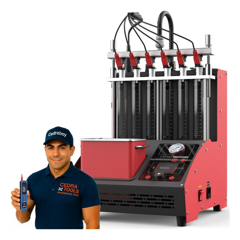 EL MODELO CNC603A CAMBIA DE MARCA LAUNCH A SMARTSAFE ++INCLUYE PROBADOR DE CIRCUITOS 3330 ++ CNC603A Laboratorio metálico para limpieza de hasta 6 inyectores automotrices a gasolina con tina de ultrasonido integrada y adaptadores. * Distribuidor autorizado directo de fabrica con 32 años de experiencia en México * Soporte tecnico y asesoria * Garantia * Protegemos cada envío de una forma profesional para que llegue a ti de buena forma * Facturación en línea Características: Limpieza ultrasónica: para realizar la limpieza ultrasónica en múltiples inyectores al mismo tiempo, eliminando los depósitos de carbono en los inyectores por completo. Selección de idiomas: el sistema admite múltiples idiomas y los usuarios pueden elegir el idioma apropiado según sus necesidades. Información de versión: para comprobar la información de la versión del software del dispositivo actual. Características principales Adoptando la tecnología de la limpieza ultrasónica, el limpiador y el probador del inyector de CNC-603A presenta una capacidad fuerte de la limpieza; El producto también adopta el ajuste de la presión del combustible y la tecnología del control por el microordenador, que puede asegurar la presión estable del combustible y la gama ajustable amplia. Es aplicable a vehículos equipados con una variedad de sistemas de inyección de gasolina. Mientras tanto, se puede realizar la automatización de los procesos de limpieza y prueba de los inyectores. Gracias a la adopción de tecnologías de control automático de microordenador y visualización digital, los procesos de limpieza y prueba se pueden controlar automáticamente y los parámetros del estado principal se pueden monitorear en tiempo real. El drenaje automático de combustible durante una determinada prueba puede realizarse a través de una rutina, debido a la adopción de la tecnología automática de control de drenaje de combustible. Inicie o (detener) el drenaje del combustible mediante el botón (Drenar) del panel de control en estado de funcionamiento o detención. 1.3 Entorno de trabajo y Especificaciones: Potencia: AC110V-127V, 50Hz/60Hz 3Amax AC220V-230V, 50Hz/60Hz 1.5Amax Mecánica Potencia: limpieza ultrasónica 300W Potencia: Rango de velocidad de 100W para simulación Prueba: 10ms 9990rpm (paso: 10rpm) Rango de sincronización: pulso de 1 ms 9999s Rango de anchura: 0,5 - 25 ms (paso: 0,1 ms) Volumen de funcionamiento: 2000 ml. Dimensión del embalaje: 438 mm × 438 mm × 528 mm Dimensión de la unidad principal: 355mm×350mm×356m m Ambiente de trabajo: Temperatura del ambiente: 0+45 grados Humedad relativa: <85% Fuerza del campo magnético externo: <400A/m * No dejes de visitar nuestra tienda oficial de CedraTools en Mercado Libre: https://tienda.mercadolibre.com.mx/cedra-tools y no te pierdas nuestra promociones y toda la variedad de marcas y productos que tenemos para ti.
