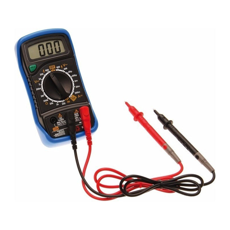 Características: Protección de plástico resistente al choque Con puesta en marcha rápido La pantalla LCD ahorra energía Cumple con las últimas regulaciones Adecuado para mediciones en las siguientes gamas: Tensión DC: 200mV - 2V - 20V - 200V - 600V - tensión de CA: 200V - 600V Resistencia: 200ohm - 2KOhm - 20KOhm - 200KOhm - 2Mohm Corriente CC: 20µA - 200µA - 2 mA - 20mA - 200mA - 10A Diodo de tensión directa Botón de memoria de valores medido (HOLD) Fuente de alimentación: 9V Adecuado para mediciones en el área CAT II SI VA A FACTURAR FAVOR DE SOLICITARLA EN EL MISMO DÍA DE SU COMPRA