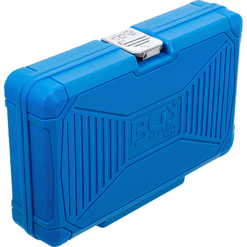 BGS 5173 JUEGO DE DADOS CON PUNTA TORX PLUS ENTRADA 6,3 MM (1/4”) / 12,5 MM (1/2”) PERFIL EN T 18 PIEZAS • Composición de juegos compactos con diferentes accionamientos y salidas • Para el funcionamiento manual • Estriado • Almacenamiento seguro y ordenado en maletín de plástico Contenido de suministro: • 1 dado con punta | entrada 6,3 mm (1/4”) | perfil en T (para Torx) T10 (BGS 2590) • 1 dado con punta | entrada 6,3 mm (1/4”) | perfil en T (para Torx) T15 (BGS 2591) • 1 dado con punta | entrada 6,3 mm (1/4”) | perfil en T (para Torx) T20 (BGS 2592) • 1 dado con punta | entrada 6,3 mm (1/4”) | perfil en T (para Torx) T25 (BGS 2593) • 1 dado con punta | entrada 6,3 mm (1/4”) | perfil en T (para Torx) T27 (BGS 2594) • 1 dado con punta | entrada 6,3 mm (1/4”) | perfil en T (para Torx) T30 (BGS 2595) • 1 dado con punta | entrada 12,5 mm (1/2”) | perfil en T (para Torx) T30 (BGS 4371) • 1 dado con punta | entrada 12,5 mm (1/2”) | perfil en T (para Torx) T40 (BGS 4372) • 1 dado con punta | entrada 12,5 mm (1/2”) | perfil en T (para Torx) T45 (BGS 4373) • 1 dado con punta | entrada 12,5 mm (1/2”) | perfil en T (para Torx) T50 (BGS 4374) • 1 dado con puntapunta de vaso | entrada 12,5 mm (1/2”) | perfil en T (para Torx) T55 (BGS 4375) • 1 dado con punta | entrada 12,5 mm (1/2”) | perfil en T (para Torx) T60 (BGS 4378) • 1 dado con punta | longitud 100 mm | entrada 12,5 mm (1/2”) | perfil en T (para Torx) T30 (BGS 4471) • 1 dado con punta | longitud 100 mm | entrada 12,5 mm (1/2”) | perfil en T (para Torx) T40 (BGS 4472) • 1 dado con punta | longitud 100 mm | entrada 12,5 mm (1/2”) | perfil en T (para Torx) T45 (BGS 4473) • 1 dado con punta | longitud 100 mm | entrada 12,5 mm (1/2”) | perfil en T (para Torx) T50 (BGS 4474) • 1 dado con punta | longitud 100 mm | entrada 12,5 mm (1/2”) | perfil en T (para Torx) T55 (BGS 4475) • 1 dado con punta | longitud 100 mm | entrada 12,5 mm (1/2”) | perfil en T (para Torx) T60 (BGS 4476)