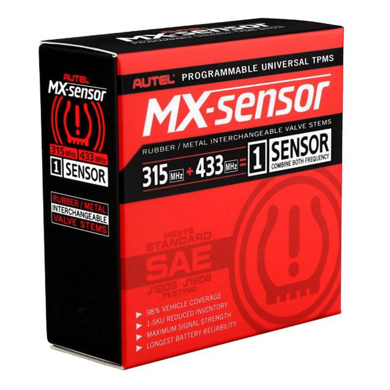 Sensor MX 1 sensor (Goma) Vástago de válvula de goma a presión El 1-Sensor es un sensor TPMS universal programable. Presenta una frecuencia combinada de 315MHz y 433MHz con vástagos de válvula de goma. El botón de liberación de presión permite reemplazar indistintamente los vástagos de las válvulas de goma o metal. El 1-Sensor es reprogramable, 99% compatible con sensores OE y cumple con los estándares SAE J1205 y J1206. Los vástagos de válvula de repuesto están disponibles para su compra en caucho o metal. Frecuencia combinada: 315MHz y 433MHz Programable con herramientas de servicio Autel TPMS Botón de liberación de presión exclusivo para reemplazar fácilmente los vástagos de las válvulas Programa para reemplazar el 99% de los sensores OE Compatible con vástagos de válvulas de caucho, aluminio o metal de color intercambiables de Autel Cumple con los estándares SAE J1205 y J1206. Máxima intensidad de señal/fiabilidad de la batería COBERTURA DEL VEHÍCULO DEL 98% INVENTARIO LIMITADO Una necesidad fácil de usar y rentable para cualquier taller que realice reparaciones de TPMS, la solución de inventario de sensores Autel 1-SKU con una cobertura de vehículos del 98% elimina la necesidad de que los distribuidores lleven cientos de sensores para cumplir con los pedidos del taller. A nivel de taller, necesitar solo 1 sensor para dar servicio a casi todos los vehículos equipados con TPMS significa un menor costo de reparación y una mayor eficiencia de instalación. PROGRAMACIÓN INALÁMBRICA DE MÁXIMA INTENSIDAD DE SEÑAL La extraordinaria intensidad de la señal del sensor permite que AUTEL 1-Sensor se programe fácilmente de forma inalámbrica incluso cuando los sensores ya se han montado en la rueda. Y con una fuerte intensidad de señal, ahora se pueden programar hasta 16 sensores en una sesión con las últimas herramientas TPMS de AUTEL. AUTEL MX-Sensor es 100% clonable. No es necesario volver a aprender cuando el sensor MX se clona con el ID del sensor original y se coloca en la misma posición. MAYOR CONFIABILIDAD DE LA BATERÍA MENOR PESO DEL SENSOR Con materiales de la más alta calidad y tecnología TPMS avanzada, AUTEL 1-Sensor proporciona una duración y confiabilidad superiores de la batería, para igualar el rendimiento de la batería del sensor OE. El cuerpo de 1 sensor pesa solo 12 g, lo que lo hace significativamente más liviano que la mayoría de los sensores del mercado, lo que garantiza una mejor estabilidad y rendimiento del sensor.