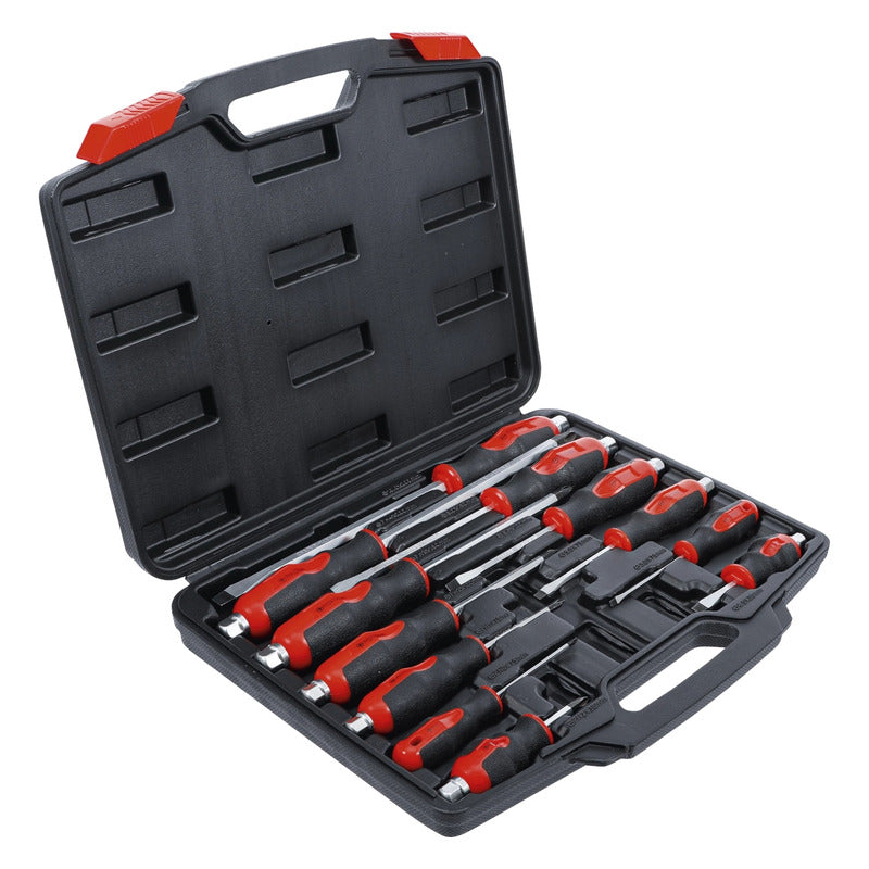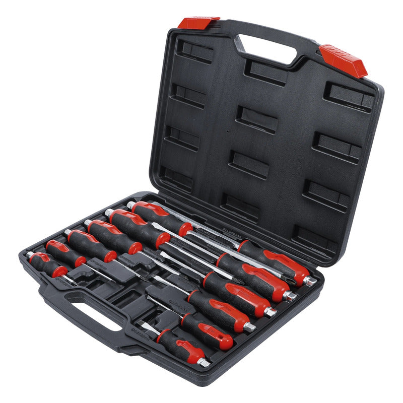DESCRIPCIÓN: JUEGO DE DESARMADORES | 12 PIEZAS PUNTAS DE CUCHILLA MAGNÉTICAS VÁSTAGO PASANTE CON HEXÁGONO EXTERIOR CON UN MANGO SUAVE Y ERGONÓMICO DESARMADOR PLANO: 3,2 X 72 MM - 5,0 X 75 MM - 6,0 X 100 MM - 6,0 X 38 MM - 8,0 X 150 MM - 9,5 X 200 MM DESARMADOR DE CRUZ: PH0 X 75 MM - PH1 X 75 MM - PH2 X 100 MM - PH2 X 38 MM - PH3 X 150 MM - PH4 X 200 MM DATOS TECNICOS: NÚMERO DE MODELO | SKU: 97895 DISEÑADO EN: ALEMANIA MARCA: BGS DIY PESO BRUTO: 2752 G