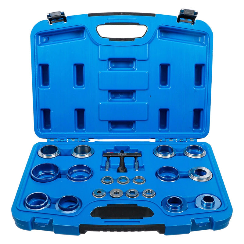 Juego De Herramientas Para Montaje Y Desmontaje Del Anillo Radial Facilita Un Montaje Sin Daños De Retenes Radiales Uso Universal Para Retenes Radiales Con Ø 21,5 A 64 Mm Adecuado Para Todos Los Retenes Radiales Montados A Presión Como Por Ej. En Árboles De Levas, Cigüeñales, Árboles De Equilibrado, Etc. 4 Separadores Para Compensar Las Diferencias De Longitud Del Tornillo Central 7 Manguitos De Presión Para El Montaje De Retenes Radiales 7 Anillos Adaptadores Para Pernos Centrales Normales (M8 - M20) 2 Garras Extractores Para Tirar Ajustándose Firmemente A Los Anillos Obturadores Radiales, 35 Mm Rango Máx. De Extracción Datos Tecnicos: Número De Modelo | Sku: 8224 Diseñado En: Alemania Marca: Bgs Peso Bruto: 2902 G