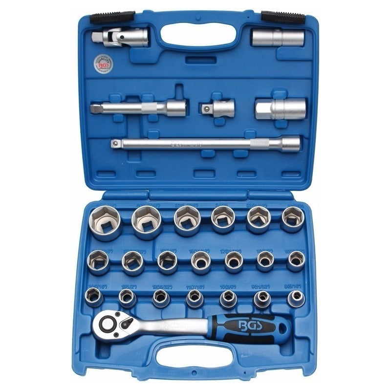 En BGS TECHNIC MX ofrecemos a nuestros clientes herramientas de uso común y especializadas con los mas altos estándares de calidad vigentes en Europa a precios competitivos Juego De Dados 1/2 | Hexagonal | 8-32 Mm | 27 Pz | Bgs 2224 Características: Código universal de producto: 4026947022246 Condición del ítem: Nuevo Marca: Bgs Modelo: 2224 MPN: 2224 SKU: 2224 Tiempo de garantía: 1 años Tipo de grantía: Garantía de fábrica Características: Dureza y apriete según normas DIN Dados con Perfil Hexagonal Matraca reversible de 72 dientes (aprobado VPA/GS) 2 Extensiones angulares de 125 + 250 mm 1 adaptador para mango corredizo 2 Dados para bujías 16 + 21 mm 20 Dados Pro Torque® -Medidas: 8 mm 9 mm 10 mm 11 mm 12 mm 13 mm 14 mm 15 mm 16 mm 17 mm 18 mm 19 mm 20 mm 21 mm 22 mm 23 mm 24 mm 27 mm 30 mm 32 mm SI VA A FACTURAR FAVOR DE SOLICITARLA EN EL MISMO DÍA DE SU COMPRA Si desea factura, favor de indicar el día de la compra de lo contrario por cuestiones fiscales, ya no sera posible proporcionarla y se genera como venta al publico en general