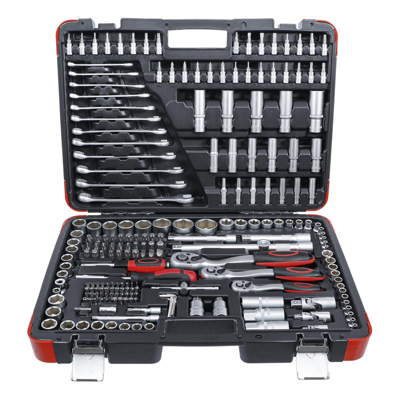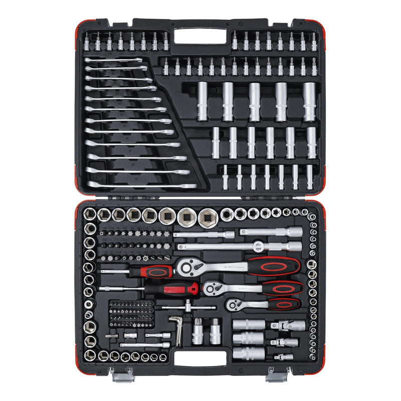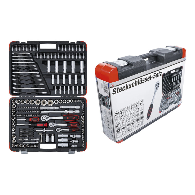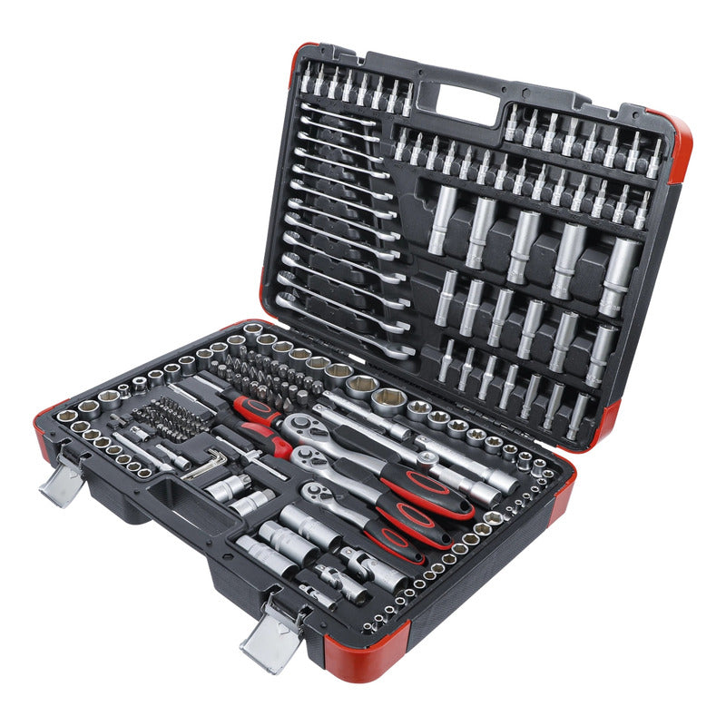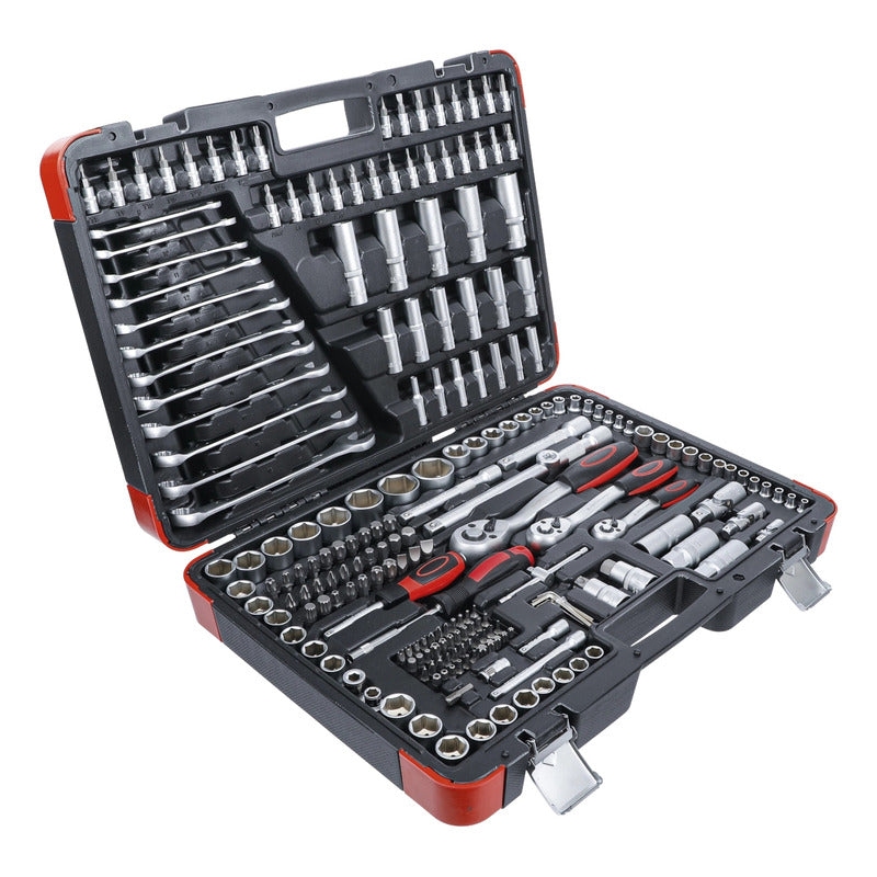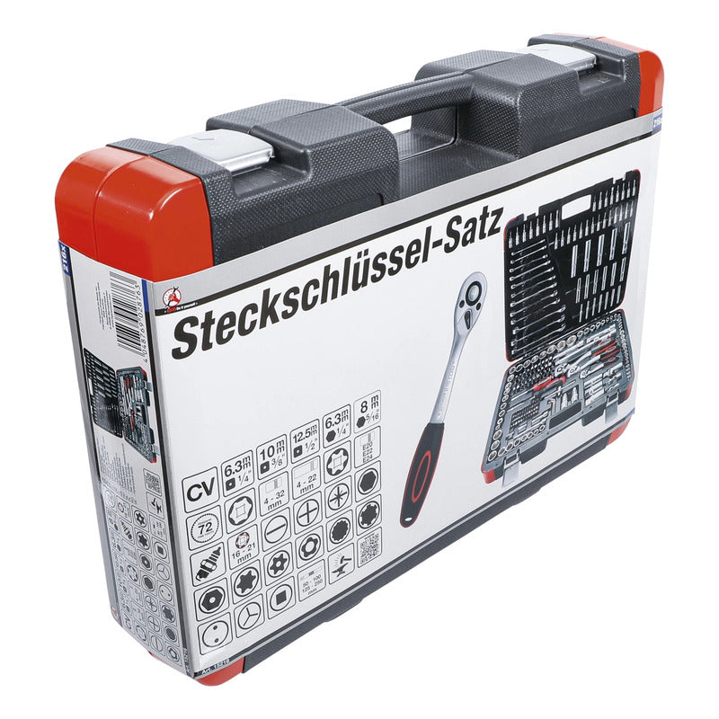 DESCRIPCIÓN: JUEGO 216 PIEZAS DE DADOS CONTENIDO DE SUMINISTRO: 12 X LLAVE COMBINADA 8 - 19 MM 7 X LLAVE ALLEN HEXÁGONO INTERIOR 1,2 - 5 MM ENTRADA 12,5 MM (1/2") MATRACA REVERSIBLE EXTENSIÓN CUADRADO EXTERIOR/INTERIOR 12,5 MM (1/2"), LONGITUD 125 MM EXTENSIÓN CUADRADO EXTERIOR/INTERIOR 12,5 MM (1/2"), LONGITUD 250 MM ADAPTADOR DE MANGO ARTICULACIÓN CARDÁNICA CUADRADO EXTERIOR/INTERIOR 12,5 MM (1/2") ADAPTADOR 10 MM (3/8) - 12,5 MM (1/2") 2 LLAVES PARA BUJÍAS, 16 - 21 MM 14 X DADO, 13 - 32 MM 5 X DADO LARGO, 16 - 17 - 19 - 21 - 22 MM 3 X DADO, PERFIL EN E E22 - E24 PUNTAS DE DADO, PERFIL EN T (PARA TORX) T70 PUNTAS DE DADO, HEXÁGONO INTERIOR 14 MM ENTRADA 10 MM (3/8") MATRACA REVERSIBLE EXTENSIÓN CUADRADO EXTERIOR/INTERIOR 10 MM (3/8"), LONGITUD 125 MM LLAVE PARA BUJÍAS, 18 MM ADAPTADOR DE MANGO ARTICULACIÓN CARDÁNICA CUADRADO EXTERIOR/INTERIOR 10 MM (3/8") 10 X DADO, 10 - 11 - 12 - 13 - 14 - 15 - 16 - 17 - 18 - 19 MM 6 X DADO LARGO, 10 - 11 - 12 - 13 - 14 - 15 MM 7 X DADO, PERFIL EN E E10 - E11 - E12 - E14 - E16 - E18 ENTRADA 6,3 MM (1/4") MATRACA REVERSIBLE MANGO CORREDIZO CON ADAPTADOR EXTENSIÓN CUADRADO EXTERIOR/INTERIOR 6,3 MM (1/4"), LONGITUD 50 MM EXTENSIÓN CUADRADO EXTERIOR/INTERIOR 6,3 MM (1/4"), LONGITUD 100 MM 13 X DADO, 4 - 4,5 - 5 - 5,5 - 6 - 7 - 8 - 9 - 10 - 11 - 12 - 13 - 14 7 X DADO LARGO, 4 - 5 - 6 - 7 - 8 - 9 - 10 5 X DADO, PERFIL EN E E4 - E5 - E6 - E7 - E8 30 X DADO CON PUNTA, CON EMPUÑADURA GIRATORIA ADECUADA ADAPTADOR DE PUNTAS 44 X PUNTAS 1 X PORTAPUNTAS ENTRADA 8 MM (5/16") 30 PUNTAS, LONGITUD 38 MM DATOS TECNICOS: NÚMERO DE MODELO | SKU: 15216 DISEÑADO EN: ALEMANIA MARCA: BGS DIY PERFIL DE FUNCIONAMIENTO: PRO TORQUE® (HEXAGONAL) PESO BRUTO: 11042 G MATERIAL: ACERO AL CROMO VANADIO ACABADO DE SUPERFICIE: CROMADO, MATE