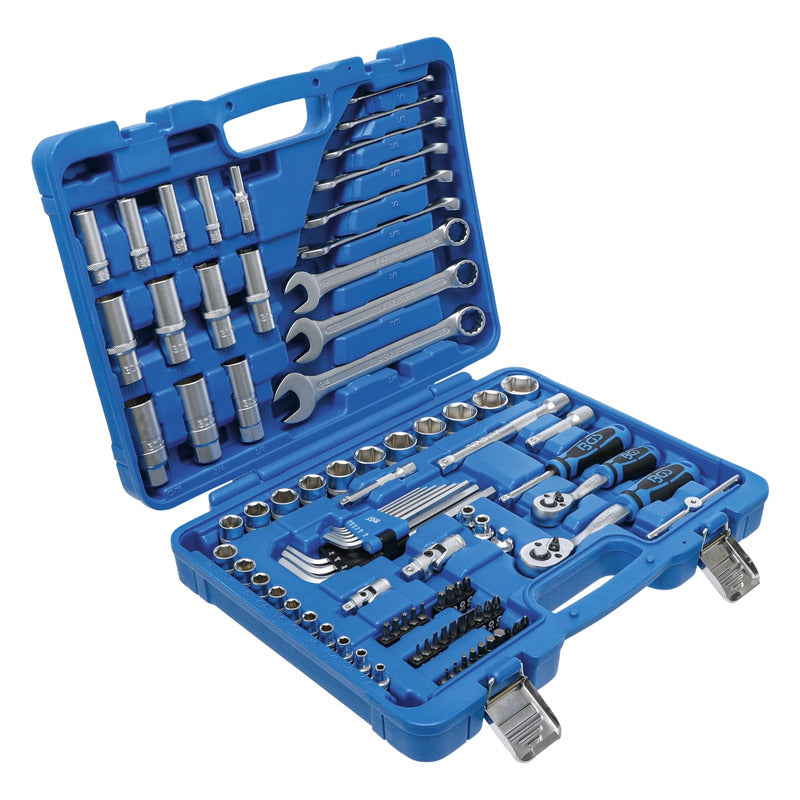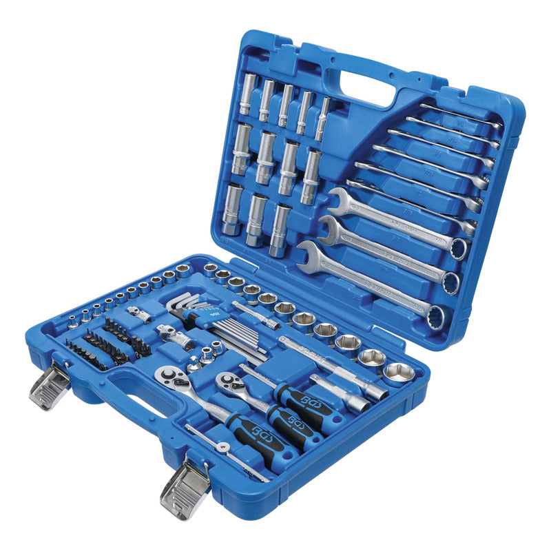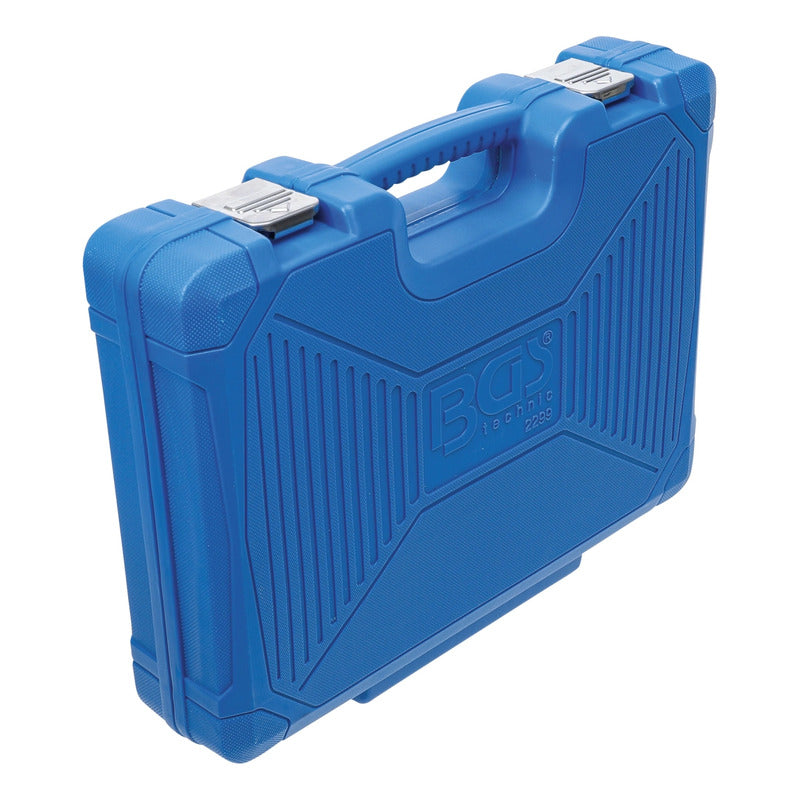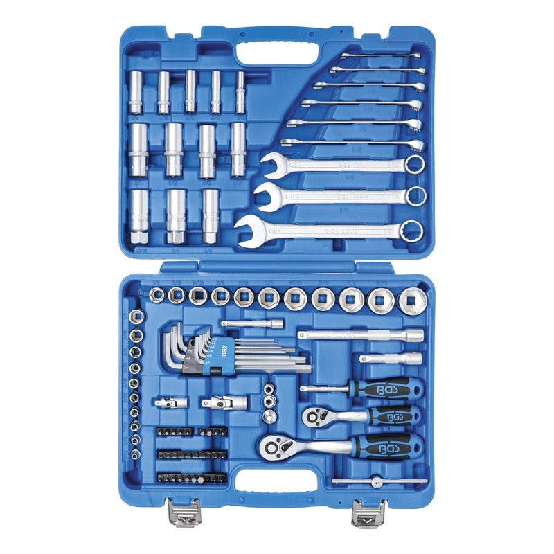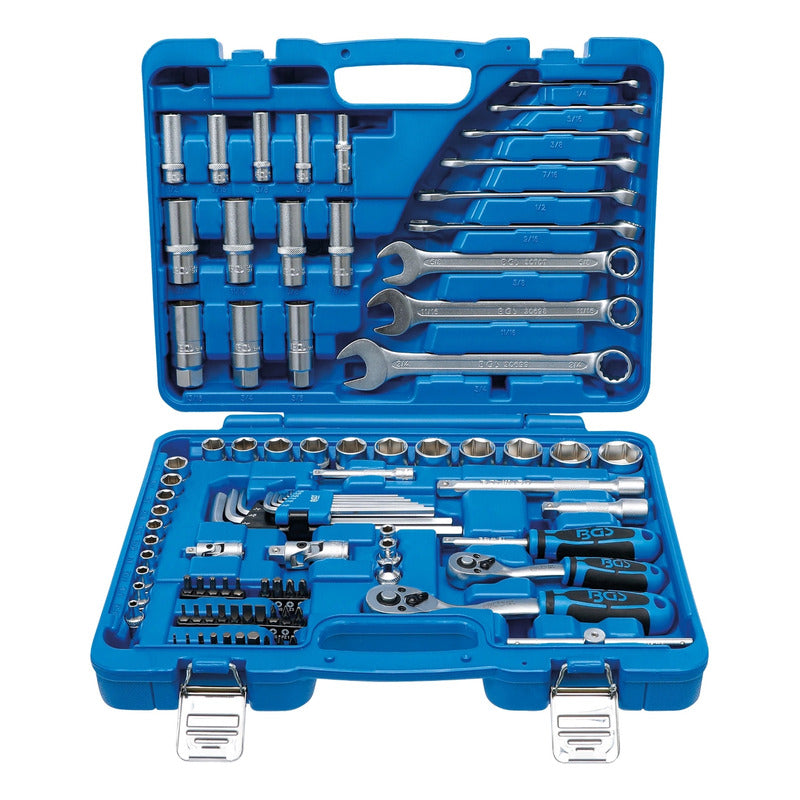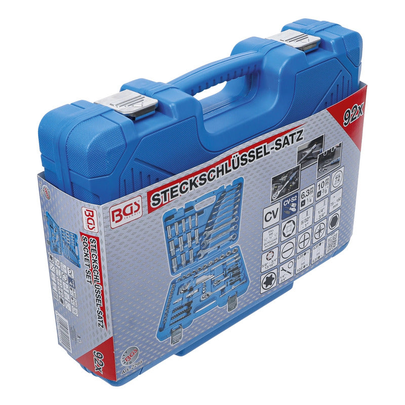 Juego 92 Piezas De Dados 1/4" + 3/8" En Standard Dados En Versión Pro Torque® (Hexagonal) Contenido De Suministro: 2 Matracas Reversibles Con Dentado De Precisión (72 Dientes) Cuadrado Exterior 6,3 Mm (1/4") + 10 Mm (3/8") Dados, Cortas, Entrada 6,3 Mm (1/4"): 5/32" - 3/16" - 7/32" - 1/4" - 9/32" - 5/16" - 11/32" - 3/8" - 7/16" - 1/2" Dados, Largas, Entrada 6,3 Mm (1/4"): 1/4" - 5/16" - 3/8" - 7/16" - 1/2" 1 Adaptador De Puntas 6,3 Mm (1/4") 1 Mango Giratorio 6,3 Mm (1/4") 1 Articulación Cardánica 6,3 Mm (1/4") 1 Extensión 6,3 Mm (1/4") 1 Mango Corredizo Con Adaptador 6,3 Mm (1/4") Dados, Cortas, Entrada 10 Mm (3/8"): 9/16" - 19/32" - 5/8" - 11/16" - 3/4" - 25/32" - 13/16" - 7/8" - 15/16" - 1" Dados, Largas, Entrada 10 Mm (3/8"): 9/16" - 5/8" - 11/16" - 3/4" 1 Adaptador De Puntas 10 Mm (3/8") 1 Articulación Cardánica 10 Mm (3/8") 1 Extensión 10 Mm (3/8") 3 Dados Para Bujías 5/8" - 3/4" - 13/16" 29 Piezas Juego De Puntas: Cruz Ph, Cruz Pz, Plano, Hexágono Interior, Perfil En T (Para Torx) 9 Piezas Juego De Llaves Combinadas: 1/4" - 5/16" - 3/8" - 7/16" - 1/2" - 9/16" - 5/8" - 11/16" - 3/4" Llaves Allen 1/16"- 5/64" - 3/32" - 1/8" - 5/32" - 3/16" - 1/4" - 5/16" - 3/8" 1 Adaptador De 6,3 Mm (1/4") A 10 Mm (3/8") Datos Tecnicos: Número De Modelo | Sku: 2299 Diseñado En: Alemania Marca: Bgs Peso Bruto: 4887 G Material: Acero Al Cromo Vanadio