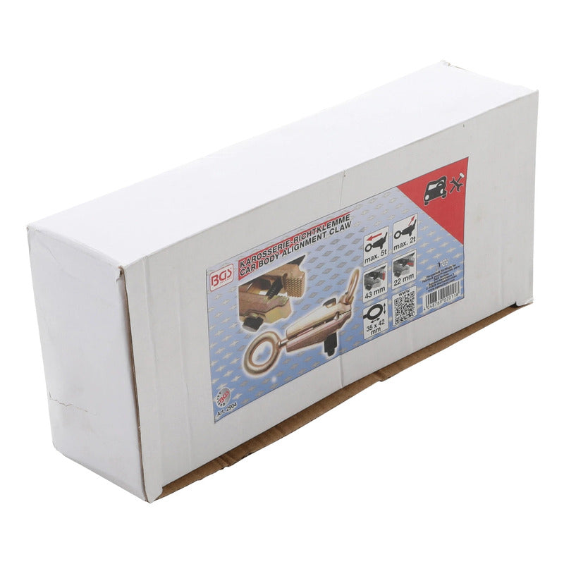 Mordaza Para La Alineacion Del Chasis, 43 Mm, Una Direccion De Tiro, Hasta 5 Ton (Lado 2 Ton) Sin Torsión Por Dispositivo De Seguridad Ancho De Garra Aprox. 43 Mm Profundidad De Sujeción Aprox. 22 Mm Fuerza De Retención De La Garra Automáticamente Mayor Bajo Tracción Ojal De Tracción 35 X 42 Mm Datos Tecnicos: Número De Modelo | Sku: 2904 Diseñado En: Alemania Marca: Bgs Peso Bruto: 2296 G Longitud: 210 Mm
