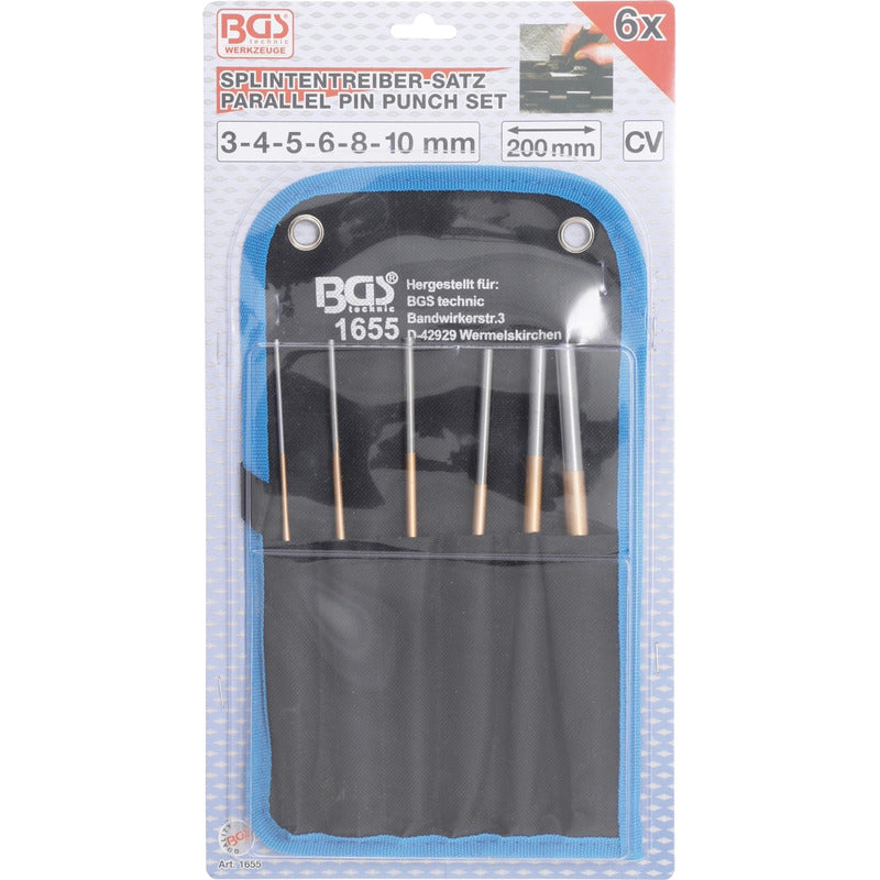 Juego 6 Piezas De Botadores, 3 - 10 Mm, 200 Mm Con Vástago Hexagonal, Endurecido Extra Largo, 200 Mm En Bolsa De Vinilo Contenido De Suministro: Botadores Para Pasadores, Longitud 200 Mm, 3 - 4 - 5 - 6 - 8 - 10 Mm Datos Tecnicos: Número De Modelo | Sku: 1655 Diseñado En: Alemania Marca: Bgs Peso Bruto: 736 G