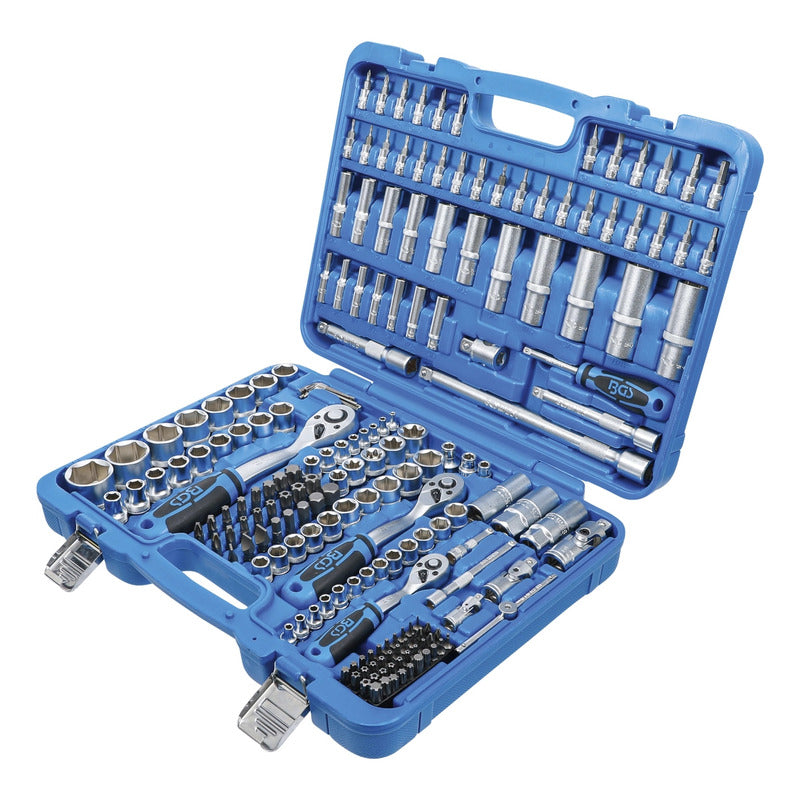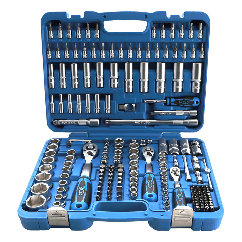 Autocle / Juego De 192 Piezas De Dados | Éstandar Contenido De Suministro: 7 X Llave Acodada Hexágono Interior 1,27 - 1,5 - 2 - 2,5 - 3 - 4 - 5 Mm Puntas Con Entrada 8 Mm (5/16"): 3 X Puntas Planas 8 - 10 - 12 Mm 4 X Puntas Cruz Ph3 - Ph4 / Pz3 - Pz4 5 X Puntas Hexágono Interior 9/32" - 5/16" - 3/8" - 15/32" - 9/16" 6 X Puntas Perfil En T (Para Torx) T40 - T45 - T50 - T55 - T60 - T70 6 X Puntas Perfil En T (Para Torx) Con Perforación T40 - T45 - T50 - T55 - T60 - T70 Puntas Con Entrada 6,3 Mm (1/4"): 10 X Puntas Perfil En T (Para Torx) T5 - T6 - T7 - T10 - T15 - T20 - T25 - T27 - T30 - T40 8 X Puntas Perfil En T (Para Torx) Con Perforación T7 - T10 - T15 - T20 - T25 - T27 - T30 - T40 5 X Puntas Perfil En Cuña (Para Ribe) M5 - M6 - M7 - M8 - M9 3 X Puntas Dentado Múltiple Interior (Para Xzn) M5 - M6 - M8 8 X Puntas T-Star Ts10 - Ts15 - Ts20 - Ts25 - Ts27 - Ts30 - Ts40 - Ts45 4 X Puntas Cruz Ph1 - Ph2 / Pz1 - Pz2 2 X Puntas Hexágono Interior 2 - 2,5 Mm Herramientas Con Entrada 6,3 Mm (1/4"): 1 X Matraca Reversible 1 X Mango Corredizo 1 X Extensión, 50 Mm 1 X Extensión, 100 Mm 1 X Articulación Cardánica 1 X Mango Giratorio, 150 Mm 13 X Dados 5/32" - 3/16" - 7/32" - 1/4" - 9/32" - 5/16" - 11/32" - 3/8" - 7/16" - 15/32" - 1/2" - 9/16" - 3/16" 7 X Dados, Largas, 5/32" - 3/16" - 1/4" - 9/32" - 5/16" - 11/32" - 3/8" 5 X Dados E-Torx E4 - E5 - E6 - E7 - E8 1 X Portapuntas Para Puntas 6,3 Mm (1/4") 30 X Puntas De Dado: Perfil En T (Para Torx) T8 - T9 - T10 - T15 - T20 - T25 - T27 - T30 Perfil En T (Para Torx) Con Perforación Th8 - Th9 - Th10 - Th15 - Th20 - Th25 - Th27 - Th30 Hexágono Interior 5/32", 3/16", 7/32", 1/4" Cruz Ph0 - Ph1 - Ph2 / Pz0 - Pz1 - Pz2 Plana 4 - 5,5 - 6,5 - 7 Mm Herramientas Con Entrada 10 Mm (3/8"): 1 X Matraca Reversible 1 X Extensión, 125 Mm 1 X Articulación Cardánica 1 X Llave Para Bujías, 18 Mm 10 X Dados 3/8" - 7/16" - 15/32" - 1/2" - 9/16" - 19/32" - 5/8" - 11/16" - 3/4" - 25/32" 6 X Dados, Largas, 3/8" - 7/16" - 15/32" - 1/2" - 9/16" - 19/32" 6 X Dados E-Torx E10 - E11 - E12 - E14 - E16 - E18 1 X Portapuntas Para Puntas 8 Mm Herramientas Con Entrada 12,5 Mm (1/2"): 1 X Matraca Reversible 1 X Extensión 125 Mm 1 X Extensión 250 Mm 1 X Adaptador De Mango Corredizo Para Extensión 12,5 Mm (1/2") 1 X Portapuntas Para Puntas 8 Mm 1 X Articulación Cardánica 2 X Llaves Para Bujías 16 + 21 Mm 17 X Dados 3/8" - 7/16" - 15/32" - 1/2" - 9/16" - 19/32" - 5/8" - 21/32" - 11/16" - 3/4" - 25/32" - 13/16" - 7/8" - 15/16" - 1.1/16" - 1.3/16" - 1.1/4" 5 X Dados, Largas, 5/8" - 11/16" - 3/4" - 13/16" - 7/8" 2 X Dados E-Torx E20 - E24 Datos Tecnicos: Número De Modelo | Sku: 2245 Diseñado En: Alemania Marca: Bgs Peso Bruto: 8912 G Material: Acero Al Cromo Vanadio