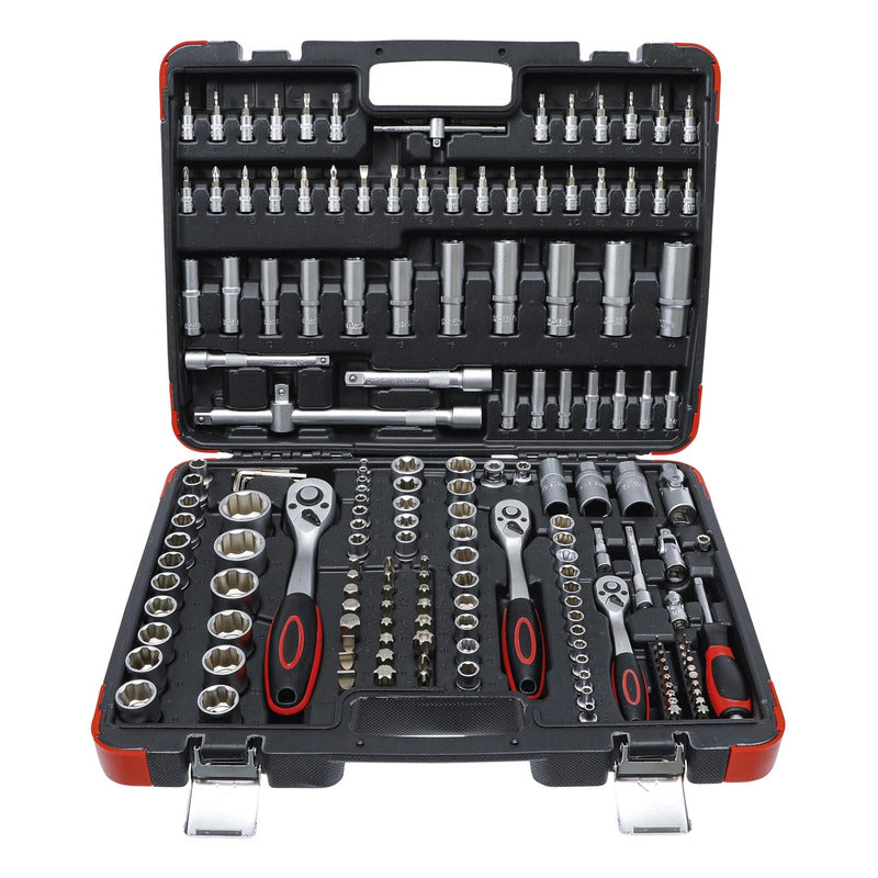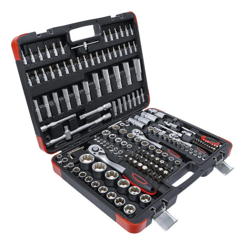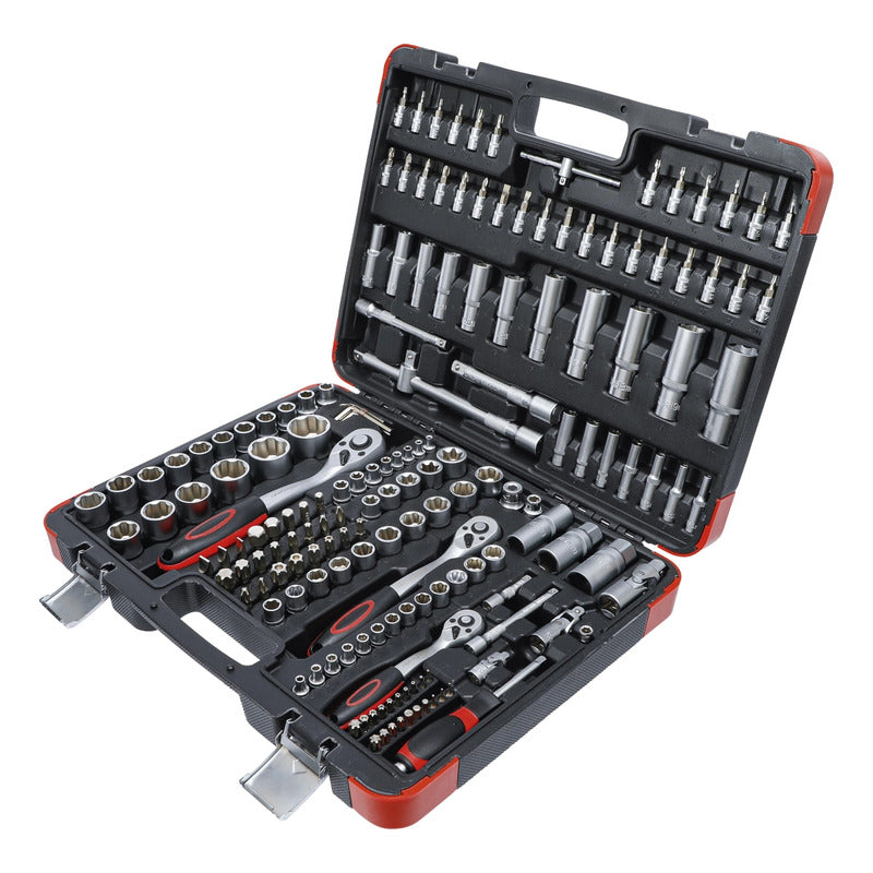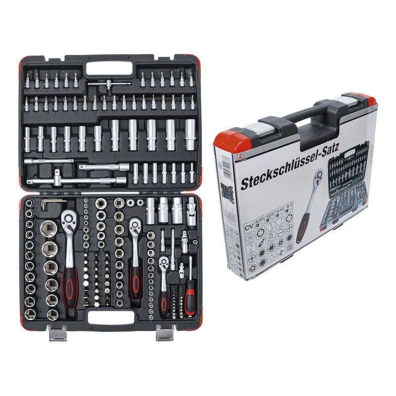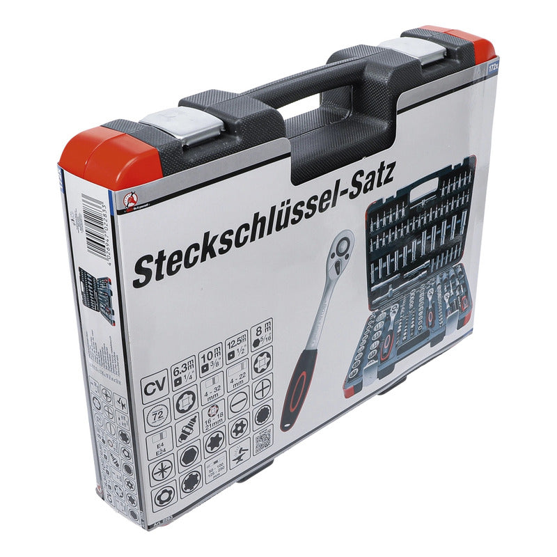 Juego De Dados Con Matraca,S Autocle De 172 Piezas Contenido De Suministro: 7 Llave Allen, Salida De Hexágono Interior 1,2 - 5 Mm Entrada 12,5 Mm (1/2") Matraca Reversible Extensión Cuadrado Exterior/Interior 12,5 Mm (1/2"), Longitud 125 Mm Extensión Cuadrado Exterior/Interior 12,5 Mm (1/2"), Longitud 250 Mm Adaptador De Mango Corredizo Articulación Cardánica Cuadrado Exterior/Interior 12,5 Mm (1/2") Llave Para Bujías, 16 - 21 Mm Adaptador 12,5 Mm (1/2) - 8 Mm (5/16") 17 Dado, 10 - 32 Mm 5 Dado Largo, 16 - 17 - 18 - 19 - 22 Mm 2 Dado, Perfil En E E20 - E24 Entrada 10 Mm (3/8") Matraca Reversible Extensión Cuadrado Exterior/Interior 10 Mm (3/8"), Longitud 125 Mm Articulación Cardánica Cuadrado Exterior/Interior 10 Mm (3/8") Llave Para Bujías, 18 Mm Adaptador 10 Mm (3/8) - 8 Mm (5/16") 10 Dado, 10 - 11 - 12 - 13 - 14 - 15 - 16 - 17 - 18 - 19 Mm 6 Dado Largo, 10 - 11 - 12 - 13 - 14 - 15 Mm 6 Dado, Perfil En E E10 - E11 - E12 - E14 - E16 - E18 Entrada 6,3 Mm (1/4") Matraca Reversible Mango Corredizo Articulación Cardánica Cuadrado Exterior/Interior 6,3 Mm (1/4") Extensión Cuadrado Exterior/Interior 6,3 Mm (1/4"), Longitud 50 Mm Extensión Cuadrado Exterior/Interior 6,3 Mm (1/4"), Longitud 100 Mm Mango Giratorio 13 Dado, 4 - 4,5 - 5 - 5,5 - 6 - 7 - 8 - 9 - 10 - 11 - 12 - 13 - 14 Mm 7 Dado Largo, 4 - 5 - 6 - 7 - 8 - 9 - 10 Mm 5 Dado, Perfil En E E4 - E5 - E6 - E7 - E8 30 Dado Con Punta 1 Adaptador De Puntas 20 Punta Entrada 8 Mm (5/16") 24 Punta Datos Tecnicos: Número De Modelo | Sku: 2283 Diseñado En: Alemania Marca: Bgs Diy Perfil De Funcionamiento: Super Lock (Perfil Ondulado) Peso Bruto: 8900 G Material: Acero Al Cromo Vanadio Acabado De Superficie: Cromado, Mate