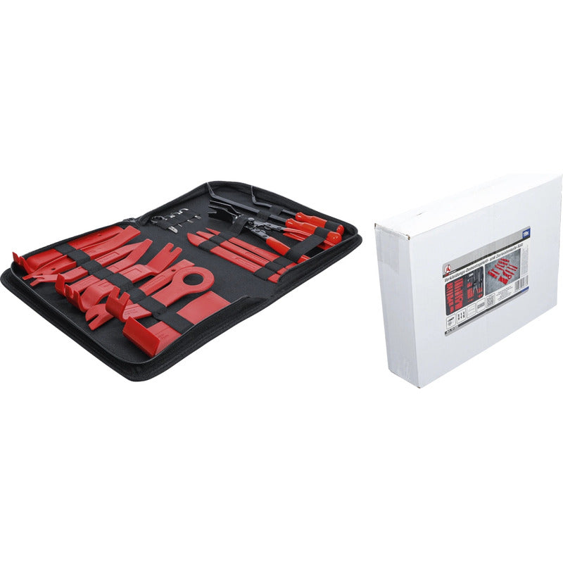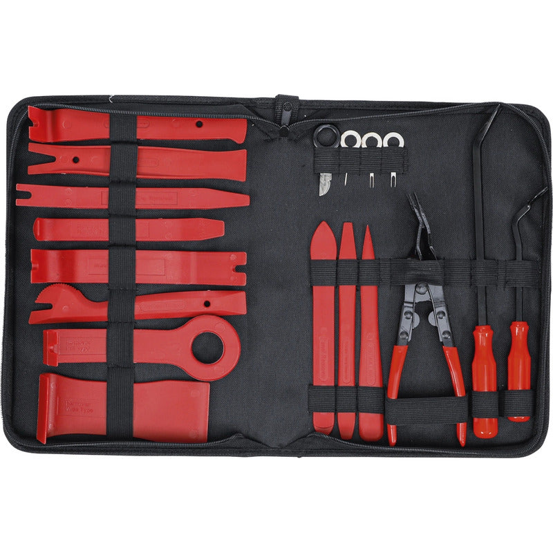 Juego De Sacamolduras Y Extractores De Paneles | Diferentes Formas | 19 Piezas Para Desmontar Sin Daños Las Piezas De Embellecedores, Clips De Plástico, Cubiertas, Espejos Retrovisores, Etc. Perfectamente Utilizable Incluso En Lugares De Difícil Acceso Y En Superficies Pintadas Amplio Campo De Aplicaciones Debido A Una Multitud De Diferentes Herramientas De Desmontaje Contenido De Suministro: 11 Herramientas De Desmontaje De Plástico Reforzado Con Fibra De Vidrio En Versión Ranurada, Recta Y En Ángulo, Para Desmontar Molduras Decorativas, Espejos De Vidrio, Cubiertas Y Paneles En El Interior Y En La Carrocería Pinza Sacagrapas Del Tapizado De La Puerta, Longitud 245 Mm, Para Soltar Los Clips Del Panel De La Puerta Extractor De Clips De Tapizados De La Puerta, 45 Mm De Longitud, Acodada 220° Con Ranura De 6 Mm, Para Desmontar, Por Ejemplo, Los Revestimientos De La Puerta Y Del Interior Extractor De Clips De Tapizados De La Puerta, 45 Mm De Longitud, Acodada 310° Con Ranura De 7 Mm, Para Desmontar, Por Ejemplo, Los Revestimientos De La Puerta Y Del Interior 2 Ganchos De Extracción Para Radios, Para Radios Con Dos Ranuras De Extracción 9X1 Mm, Adecuados Para, Por Ejemplo, Becker, Blaupunkt, Alpine, Mercedes-Benz, Skoda, Audi, Ford Y Muchos Otros 3 Herramientas De Desenganche Para Los Contactos Del Conector De Radio, Para Desmontar Los Contactos En Los Conectores Iso Y Mini-Iso Y Los Contactos Individuales Bloqueados En Otros Conectores Específicos De Radios Del Coche En Una Bolsa Con Cremallera Datos Tecnicos: Número De Modelo | Sku: 91326 Diseñado En: Alemania Marca: Bgs Peso Bruto: 1214 G