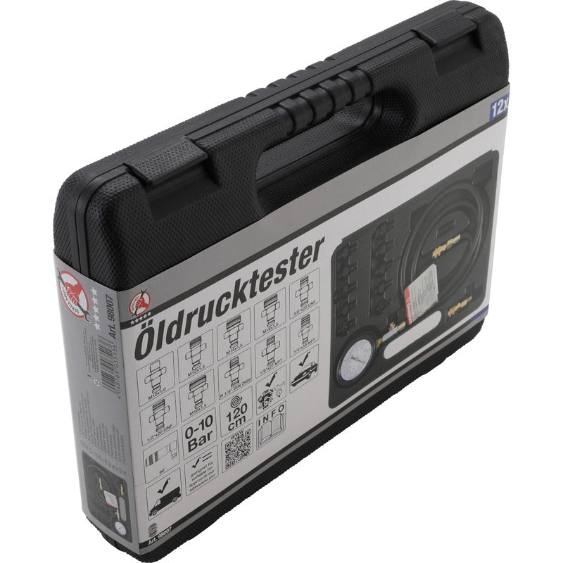 Probador Para La Presión De Aceite Ayuda A Localizar Fugas En El Sistema De Aceite Con Diferentes Adaptadores: R 1/8“ Din 2999, 1/8“ X 27 Npt, 1/4“ X 18 Npt - 3/8“ X 20 Unf - 1/2“ X 20 Unf M10 X 1,0 - M12 X 1,5 -  M14 X 1,5 M16 X 1,5 - M18 X 1,5 - 90° Escala De 0 - 10 Bar (Tolerancia +/- 5%) Datos Tecnicos: Número De Modelo | Sku: 98007 Diseñado En: Alemania Marca: Bgs Diy Peso Bruto: 1318 G