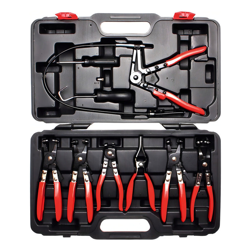 Juego Pinzas Abrazaderas De Mangueras | 8 Pz | Bgs 421 Características: Código universal de producto: 4026947004211 Diámetro máximo de la abrazadera: 60 mm Largo: 22 Cm Marca: Bgs Material de la punta: Acero Modelo: 421 MPN: 421 SKU: 421 Para aflojar/apretar abrazaderas Adecuado para la mayoría de vehículos de Europa, América y Asia Incluye: - Pinzas para abrazaderas de manguera - Pinzas giratoria para alambre de resorte - Pinzas giratoria para correa de la mandíbula - Pinza con extensión para abrazadera de la manguera - Pinzas para remover manguera - Pinzas para abrazadera de la manguera - Desarmadores - Herramienta de desmontaje de la manguera - Pinzas de desmontaje para tuberías de combustible