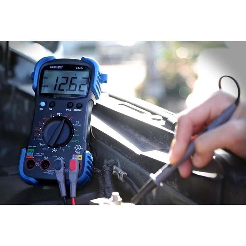 * Distribuidor autorizado directo de fabrica con 32 años de experiencia en México * Soporte tecnico y asesoria * Garantia * Protegemos cada envío de una forma profesional para que llegue a ti de buena forma * Facturación en línea Innova 3340a Multimetro 100% Automotriz Autorango Multímetro profesional para automóvil diseñado para ayudar a detectar problemas de motor – Producto certificado UL Prueba los diodos del alternador, ciclo de trabajo, solenoides, puntos de interrupción, cableado, interruptores, y más. Sonda de temperatura, abrazadera inductiva RPM y funda de transporte incluida. Cuenta con protección de auto-alcance, apagado automático y sobrecarga. Incluye soportes de prueba para protección manos libres. El multímetro digital para automóvil INNOVA 3340 es la elección de los profesionales para un multímetro de alta calidad. Las características de calidad profesional ayudan a identificar los problemas del motor mientras que la impedancia de 10 megOhm evita daños a la ECU (Unidad de Control Electrónico). Incluye sonda de temperatura para medir la temperatura tanto en Celsius como en Fahrenheit. Utiliza la recolección inductiva hasta RPM del vehículo (incluyendo bobina en los vehículos eléctricos). Esta unidad proporciona pruebas con manos libres e incluye soportes para cables de prueba. Características adicionales incluyen autorango, apagado automático, protección de sobrecarga, ajuste automático de cero y protección de polaridad inversa. Los botones Min/Max y Hold ahorran datos recuperados y los protectores de esquina resistentes proporcionan protección contra caídas. El INNOVA 3340 es ideal para probar diodos alternadores, ciclo de trabajo, solenoides, puntos de interrupción, cableado, interruptores, y mucho más. * No dejes de visitar nuestra tienda oficial de CedraTools en Mercado Libre: https://tienda.mercadolibre.com.mx/cedra-tools y no te pierdas nuestra promociones y toda la variedad de marcas y productos que tenemos para ti.