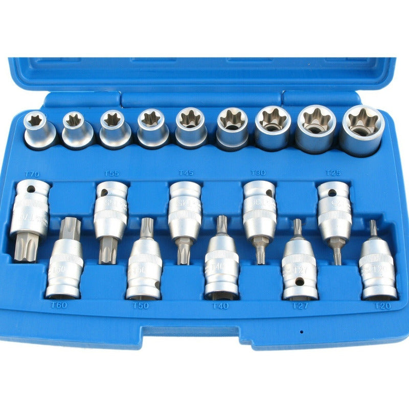 Juego De Dados Hembra Y Puntas Torx 1/2 | 19 Pzas En Caja
