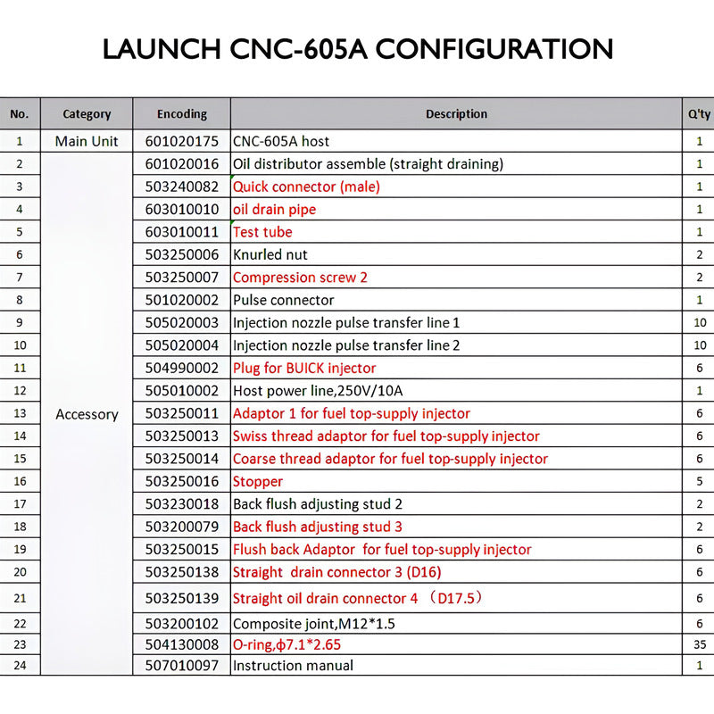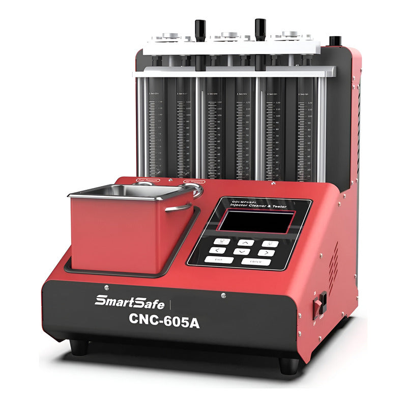 La marca Launch a cambiado por Smartsafe para este laboratorio de limpieza de inyectores, el modelo sigue siendo el mismo CNC605A al igual que las funciones y prestaciones. CNC605A LABORATORIO PARA 6 INYECTORES TIPO GDI, FSI, EFI CON TINA DE ULTRASONIDO. ++INCLUYE PROBADOR DE CIRCUITOS 3330 INNOVA ++ **SmartSafe CNC605A – Laboratorio de Limpieza y Prueba de Inyectores** El CNC605A es un equipo profesional diseñado para la limpieza y prueba de inyectores de combustible, ideal para talleres automotrices que trabajan con tecnología GDI, EFI y SFI. Su sistema combina limpieza ultrasónica, simulación electrónica y pruebas de precisión para garantizar un rendimiento óptimo en los sistemas de inyección modernos. * Distribuidor autorizado directo de fabrica con 32 años de experiencia en México * Soporte tecnico y asesoria * Garantia * Protegemos cada envío de una forma profesional para que llegue a ti de buena forma * Facturación en línea **Características principales:** * Compatible con inyectores GDI, EFI, SFI y sistemas de inyección a gasolina. * Limpieza ultrasónica de alta eficiencia (60W) para eliminar depósitos de carbón. * Pruebas de uniformidad, atomización, sellado y volumen de inyección. * Permite limpieza sin desmontar los inyectores del motor. * Control electrónico que simula condiciones reales de funcionamiento del motor. * Pantalla táctil para una operación intuitiva y sencilla. **Especificaciones técnicas:** * Fuente de poder: AC 110V ±10% / 60 Hz * Potencia de entrada: 350W * Potencia ultrasónica: 60W * Presión de combustible: 0.1 – 10 bar * Presión de aire de entrada: 5 – 8 bar * Rango de RPM: 100 – 9900 rpm (incrementos de 100 rpm) * Ancho de pulso (PW): 0.5 – 25.0 ms (incrementos de 0.1 ms) * Tiempo de prueba: 1 – 30 minutos * Capacidad del tanque: 3 litros