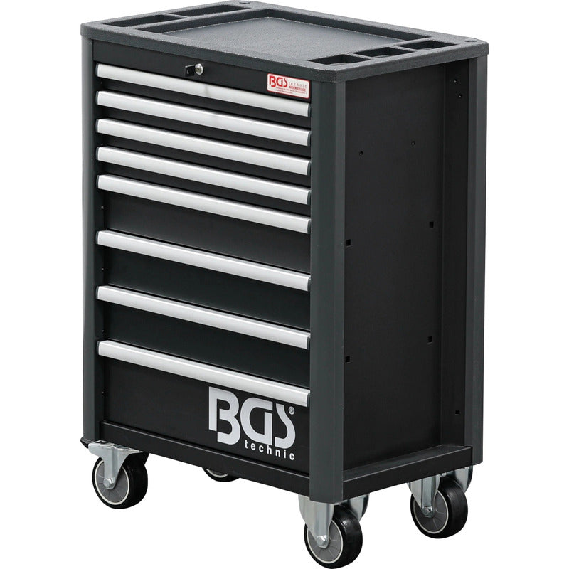 NOMBRE DEL ARTÍCULO: GABINETE DE HERRAMIENTAS | 8 CAJONES | VACÍO Descripción: acabado tipo taller de alta calidad espesor de pared del cuerpo: 1,2 mm espesor de pared del cajón: 0,8 mm ruedas extra fuertes de 125 mm con rodamientos, 2 de ellas son ruedas de dirección bloqueables cierre centralizado mediante cerradura cada cajón con sistema de seguridad individual, bloqueo de extracción 8 cajones, guiados sobre rodamientos de bolas para una marcha suave: Cajones del 1 al 4 hasta 20 kg de carga (por cajón) Cajones del 5 al 7 hasta 25 kg de carga (por cajón) Cajón 8 hasta 30 kg de carga bandeja de plástico resistente con 5 compartimentos, carga máxima 50 kg compartimento de almacenamiento lateral: 78 x 370 x 75 mm (H x A x L) con asa lateral Datos técnicos: Número de modelo | SKU: 4111 Diseñado en: Alemania Marca: BGS Número de cajones: 8 Pieza(s) Anchura: 724 mm Peso bruto: 81000 g Altura: 1033 mm Longitud: 470 mm Guías de cajones: 100 % Anchura de cajón: 569 mm Altura de cajón: 4 x 53 | 3 x 111 | 1 x 169 mm Profundidad de cajón: 409 mm