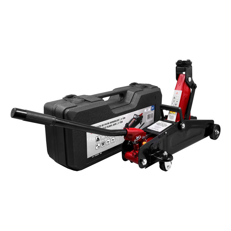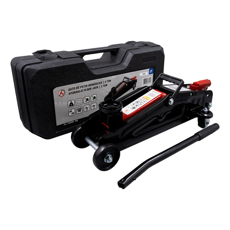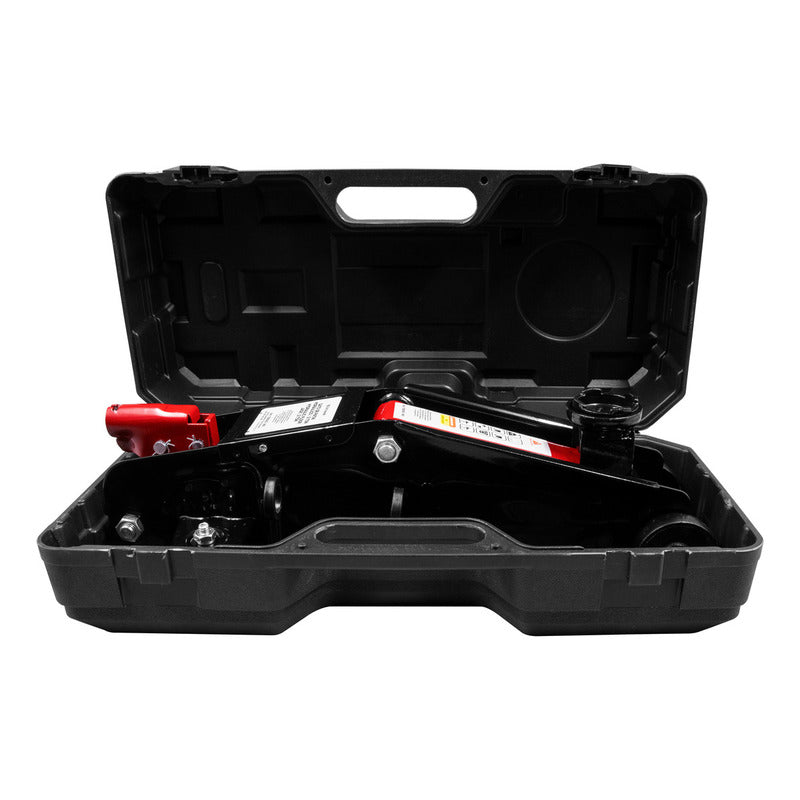 Peso: 7.3 / 8.4 kg Recorrido de elevación: 195 mm Altura máxima: 33 cm Altura mínima: 13.5 cm Largo de la palanca: 44 cm CARACTERÍSTICAS Capacidad: 2 Ton Apto para vehículos de baja altura Fácil de usar y ligero, con estuche rígido de transporte Diseño de 30 movimientos para un manejo suave y preciso Llantas traseras giratorias para un manejo sencillo Palanca para controlar el levantamiento y descenso Válvula de seguridad que previene sobrecargas Adecuado para uso profesional en talleres mecánicos y para llevar en el vehículo Cumple con estándares ASME
